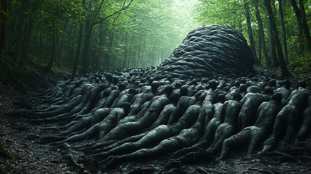 — ...Все это смердит, периодически шевелится. Некоторые еще живые, но вырваться не могут из-за покрывающей холмик полупрозрачной слизи.