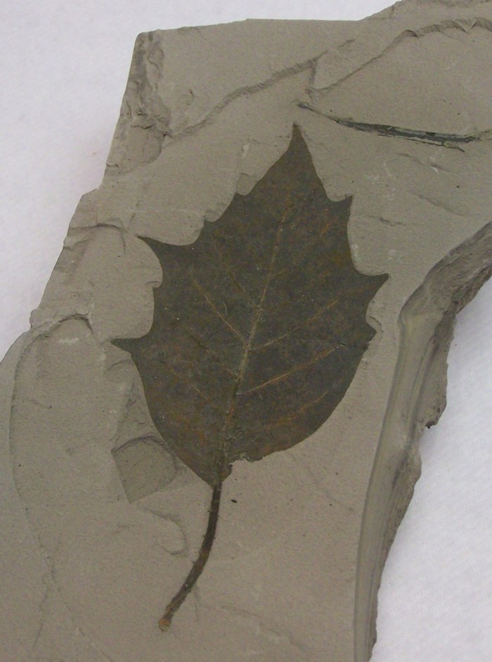 Лист клена, палеоцен (~50 млн лет), экспонат Хьюстонского музея естественных наук.