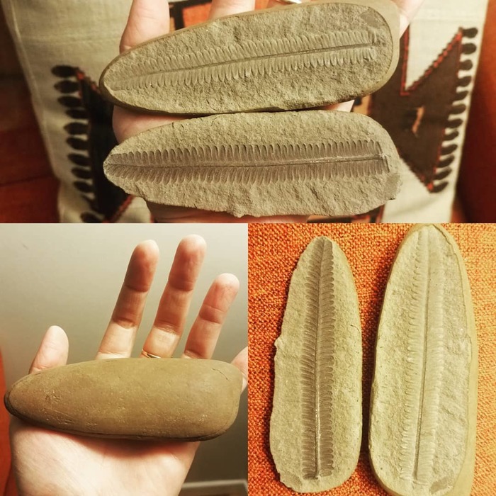 Отпечаток папоротника Pecopteris в конкреции из знаменитого местонахождения Мэзон-Крик в Иллинойсе среднепенсильванского (=московский ярус) возраста (~305 млн лет). #палеоботаника@paleoevol