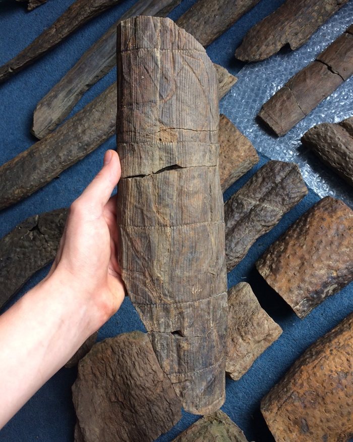 Крупный окаменелый ствол каламита, древовидного хвоща, из верхнего карбона Англии.