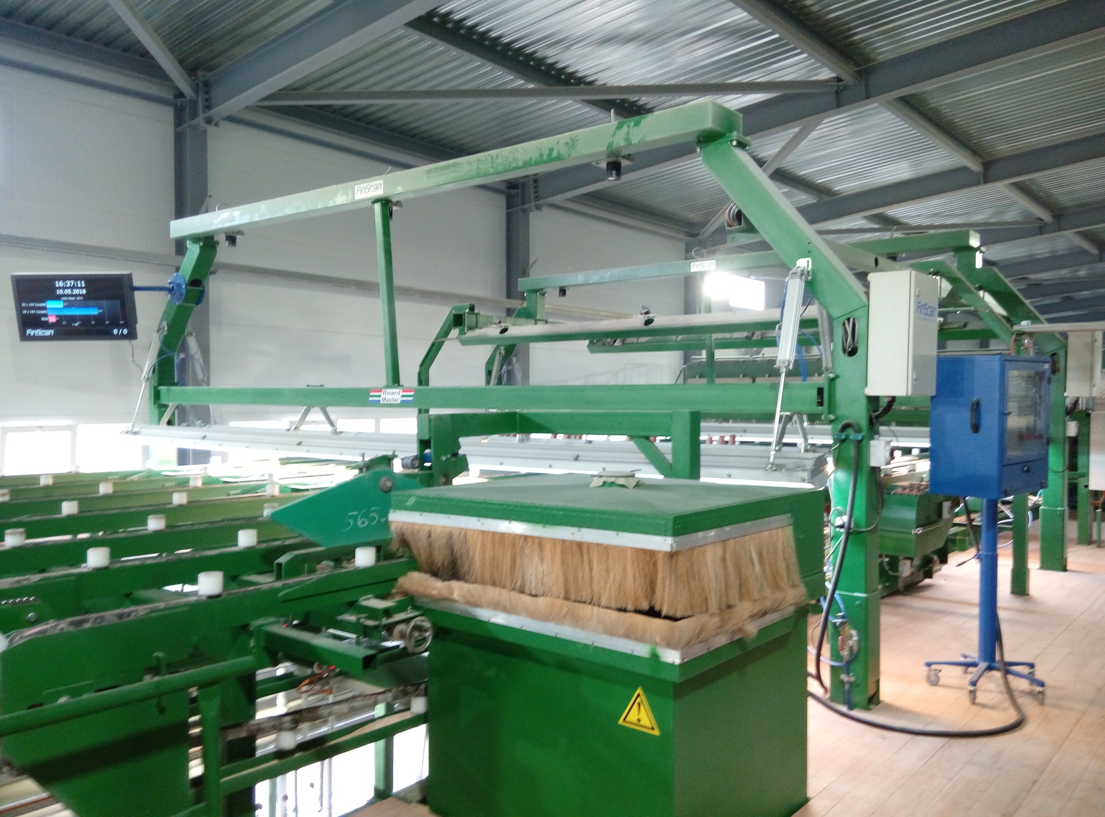 А сортировка проходит с помощью такого хитрого устройства как FinScan, если не вдаваться в подробности, то он сканирует доску со всех сторон, и по специально настроенной таблице сортировки, предпринимает в какой карман скидывать доску.