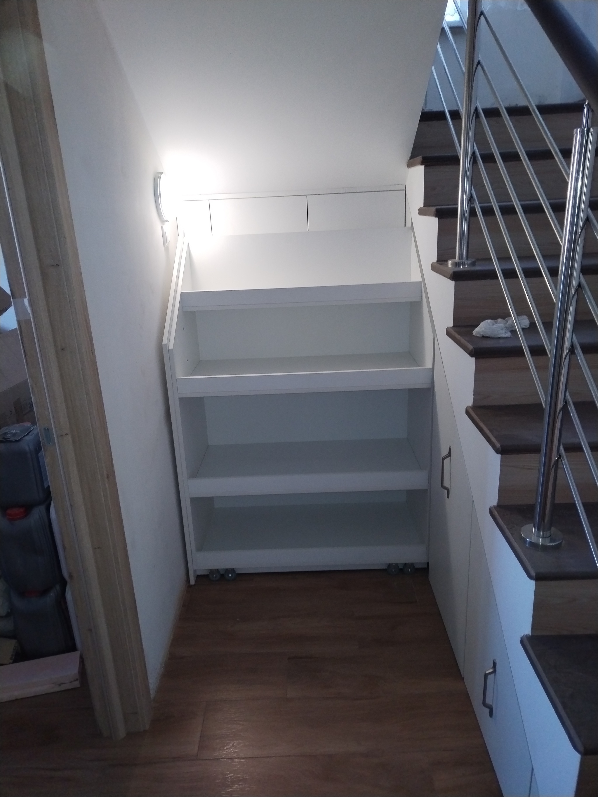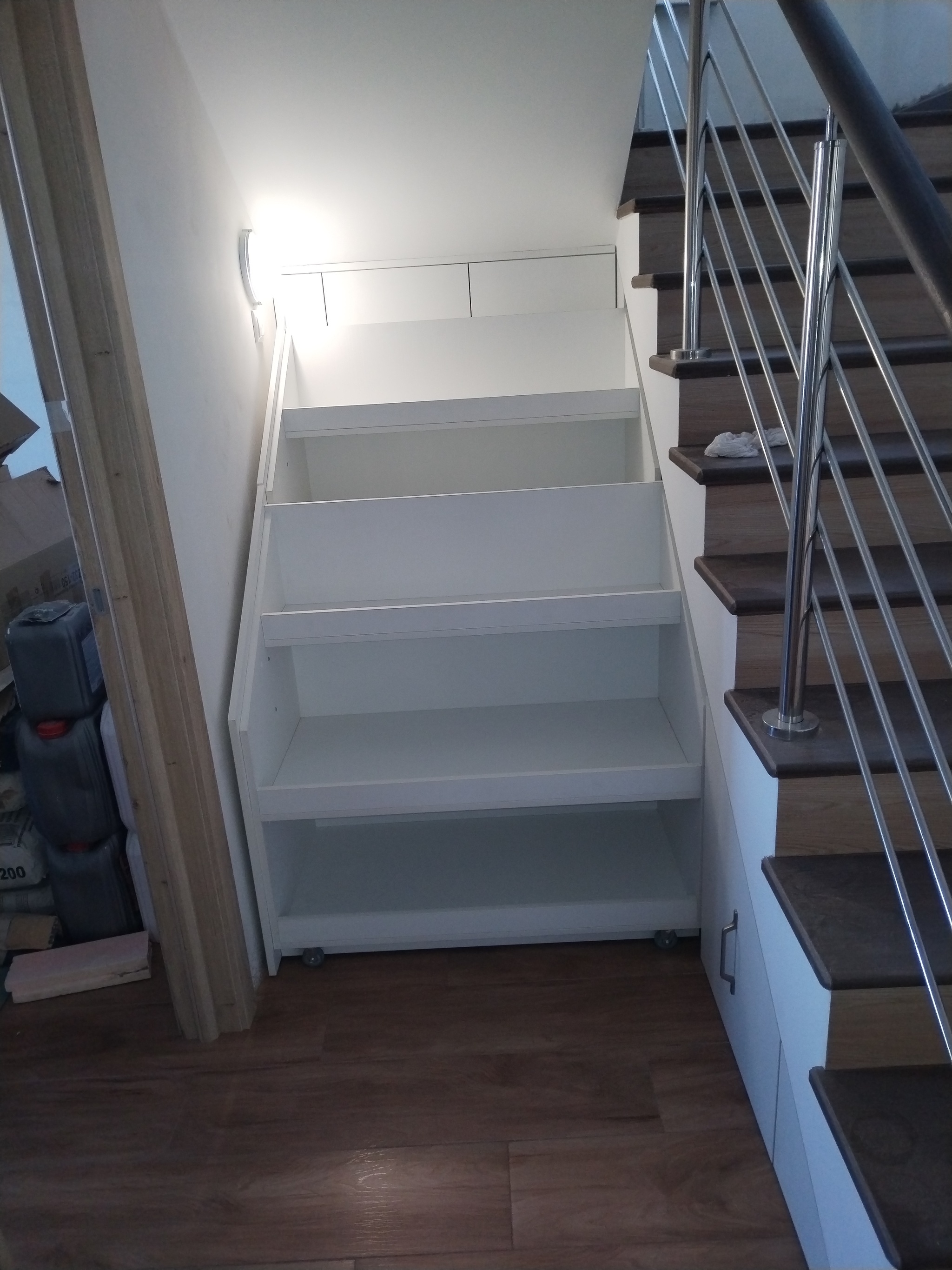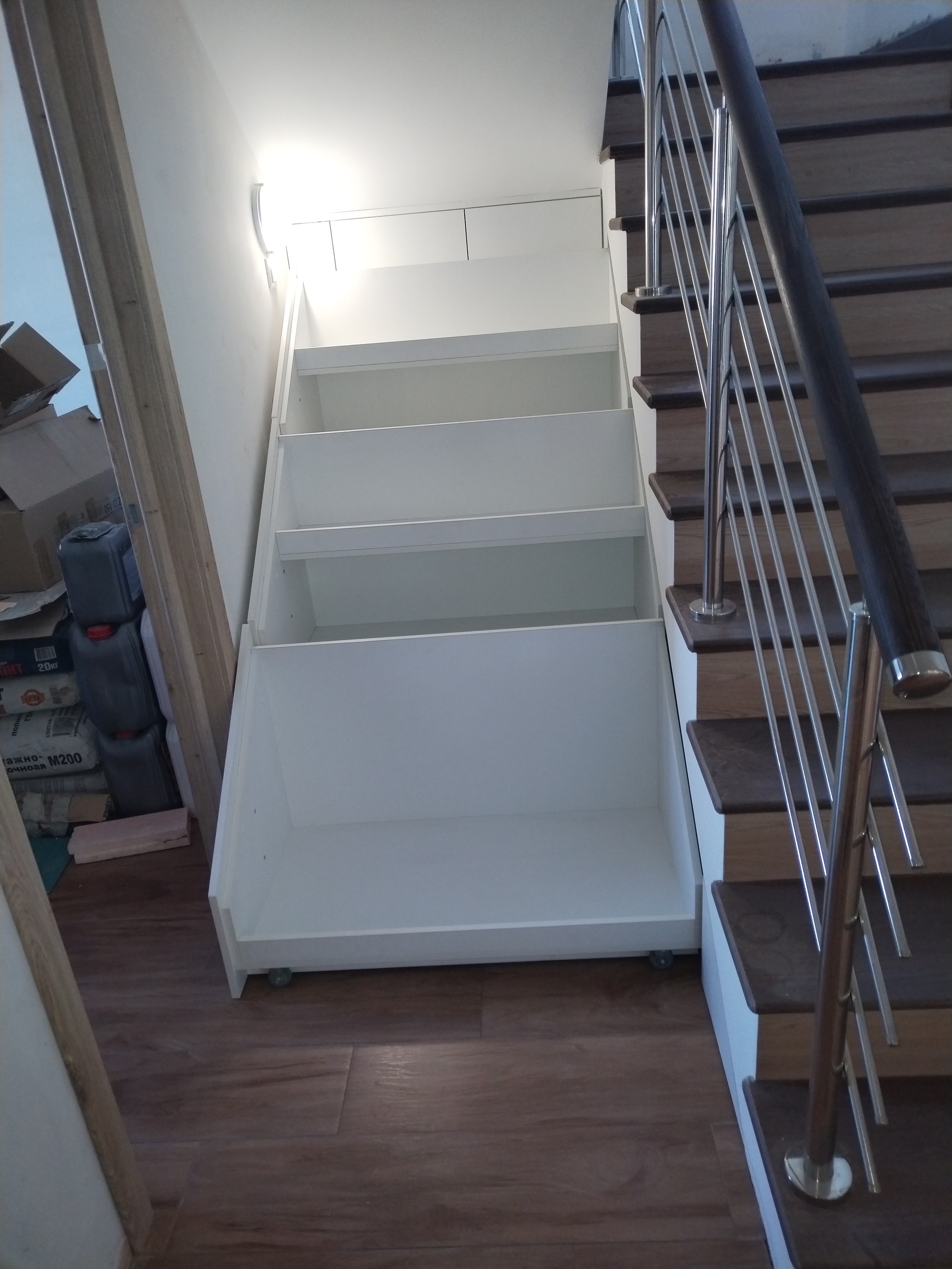 10 MrRubanok Хобби Лестница 10 месяцев назад Всем привет!Закончили монтаж лестницы и подлестнечного пространстваСтупени керамогрнанит, ограждение комбинированное нержавеющая сталь и дальневосточный ясень, ящики лдсп [моё] Лестница Работа Своими руками Фотография Мебель Длиннопост Ещё 0