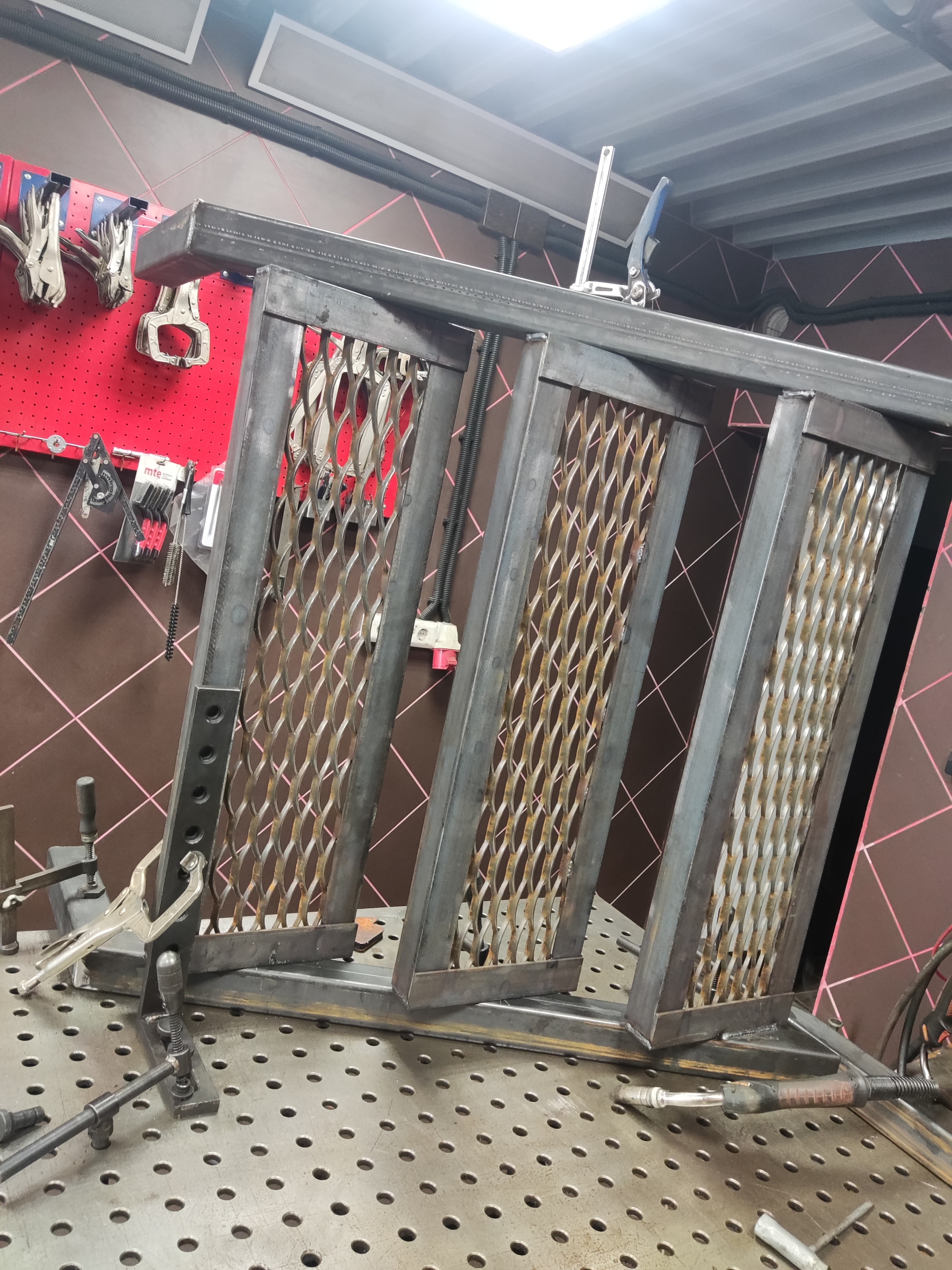 Делал один, так что фото не много) Сразу сварил площадку и ступеньки, что бы нарезать просечной лист в размер. Не поленился даже плазму достать и вытащить на улицу, резать его болгаркой мрак)) просто ненавижу) Ещë больше ненавижу чистить металл болгаркой или щëткой, особенно такой лист) два квадрата мучал долго, а вместе с трубами часа три получилось. Лестницу собрал на столе, с помощью лазерного уровня и линейки. По ходу дела внëс изменения, поэтому записанные точки с эскиза стали неактуальны, и пришлось собирать так.