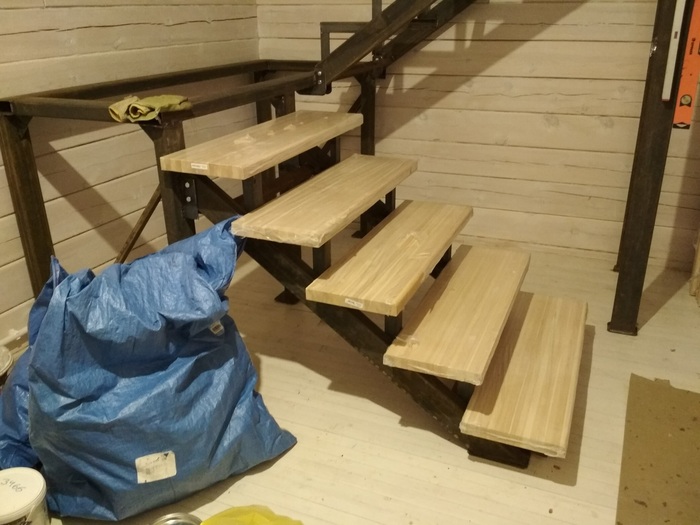 Покрасив металлический каркас эмалью поехал за ступеньками и балясинами в магазин.