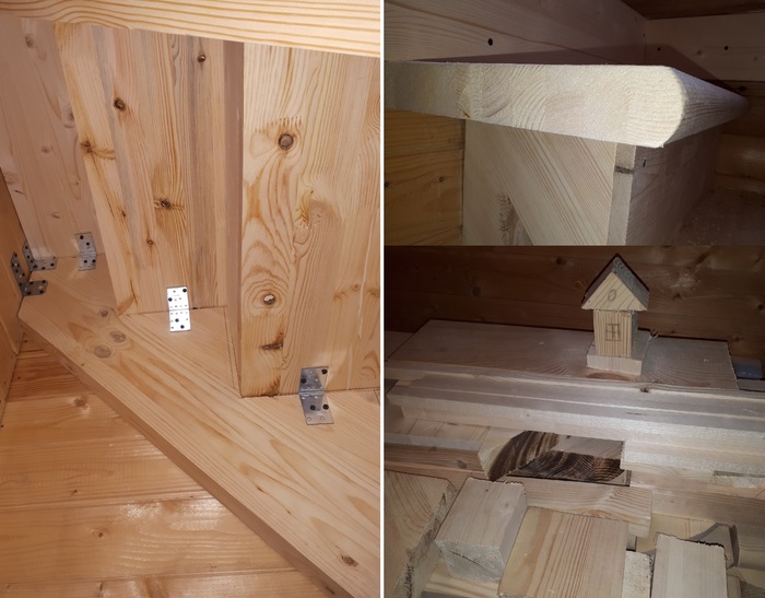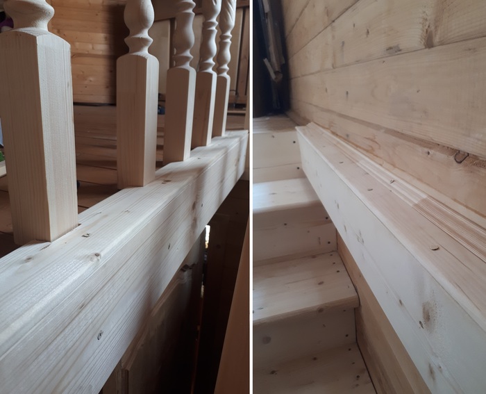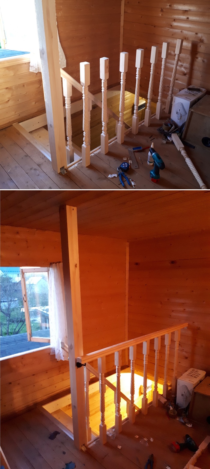15) Перила в итоге прикрутил сверху насквозь, с утоплением самореза, далее залил ПВА и подкрасил.