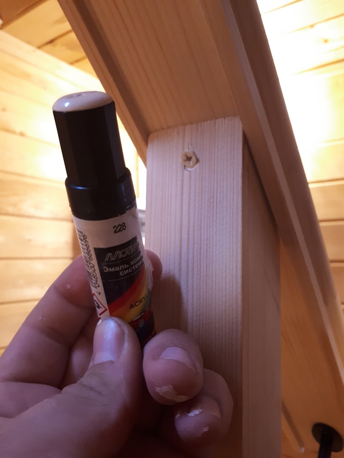17) Подкрашивал автомобильной краской для мелких царапин и сколов. Палитра большая, кисточка удобная =) Кстати, тут видно, как прикручивал нижнюю периллу к балясинам.