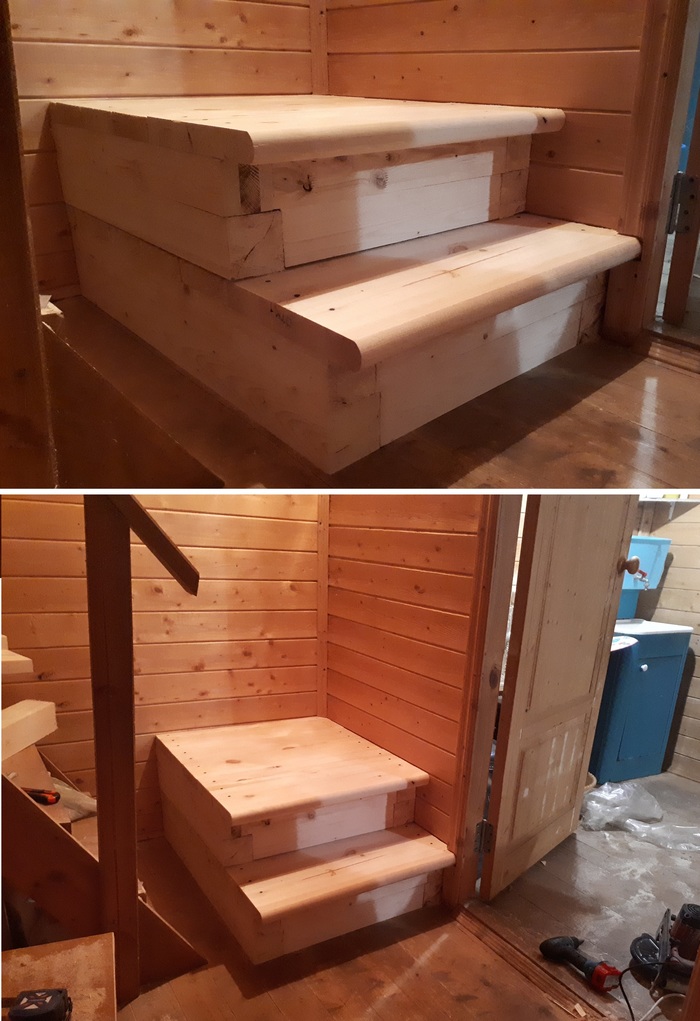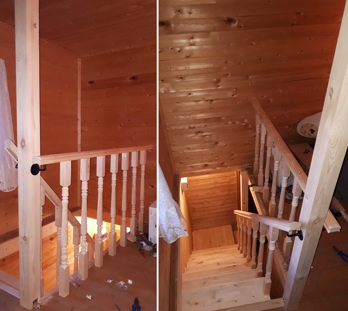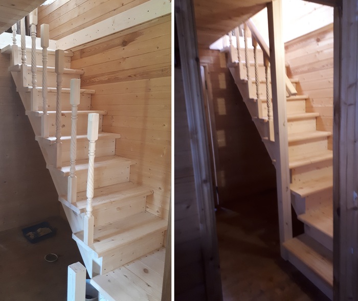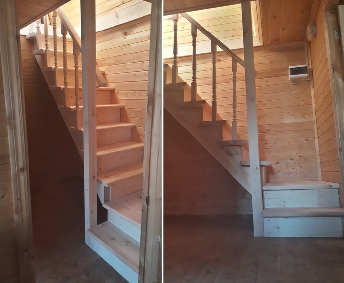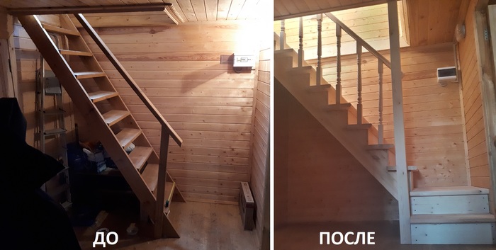 21) Немного фото ДО и ПОСЛЕ, и слов о том что мог забыть. Лестница по строительным меркам неидеально, но угол с 60 градусов изменился до 45. Ступени стали 30 см, с выступом на 8 см, вместо бывших, которые были 17 см.