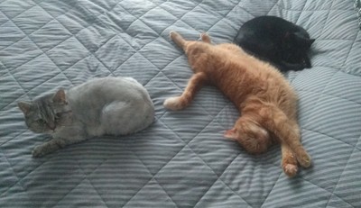 Мой триКОТаж подобранцев был в шоке! Но как-то быстро привыкли, и сейчас все живут в мире и согласии. Средний кот так вообще Лесин поклонник, ходит за ней хвостом и всячески домагивается))))