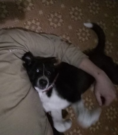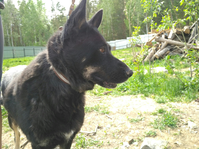 Это Леська уже почти месяц с нами. Собака-улыбака!