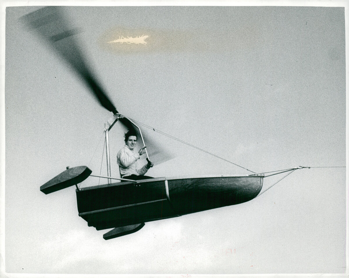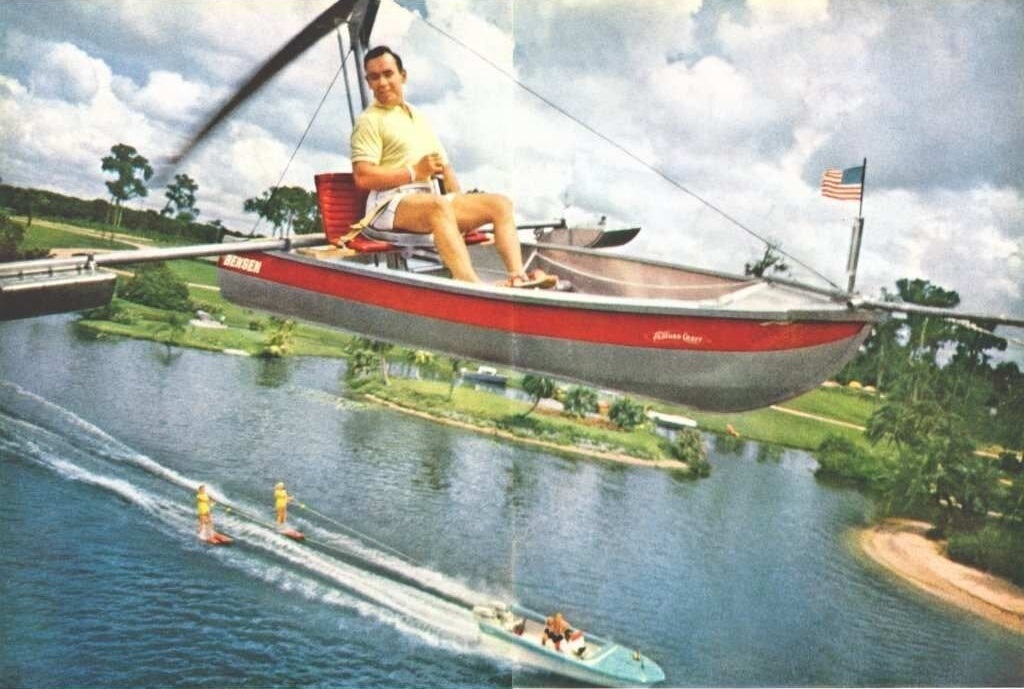 В 1956 году американский авиаконструктор Игорь Бенсен сделал и одну из своих самых удачных моделей- "гиропланер"-лодку. Летала она на буксире за любой моторкой.