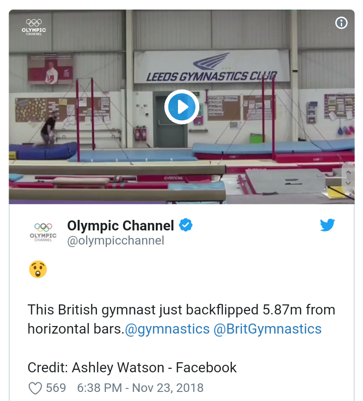 Член сборной Великобритании по спортивной гимнастике Эшли Уотсон попал в книгу рекордов Гиннесса.