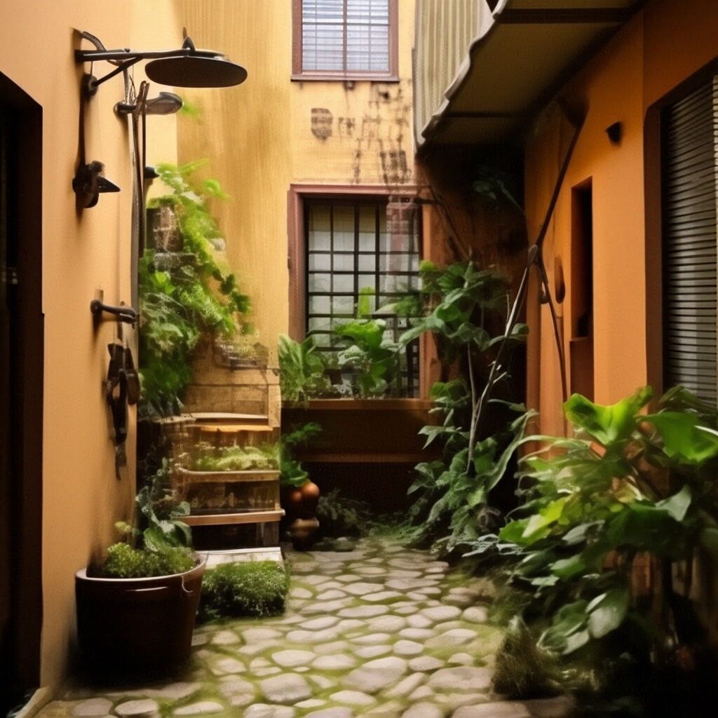 Летний душ во дворе многоэтажного дома