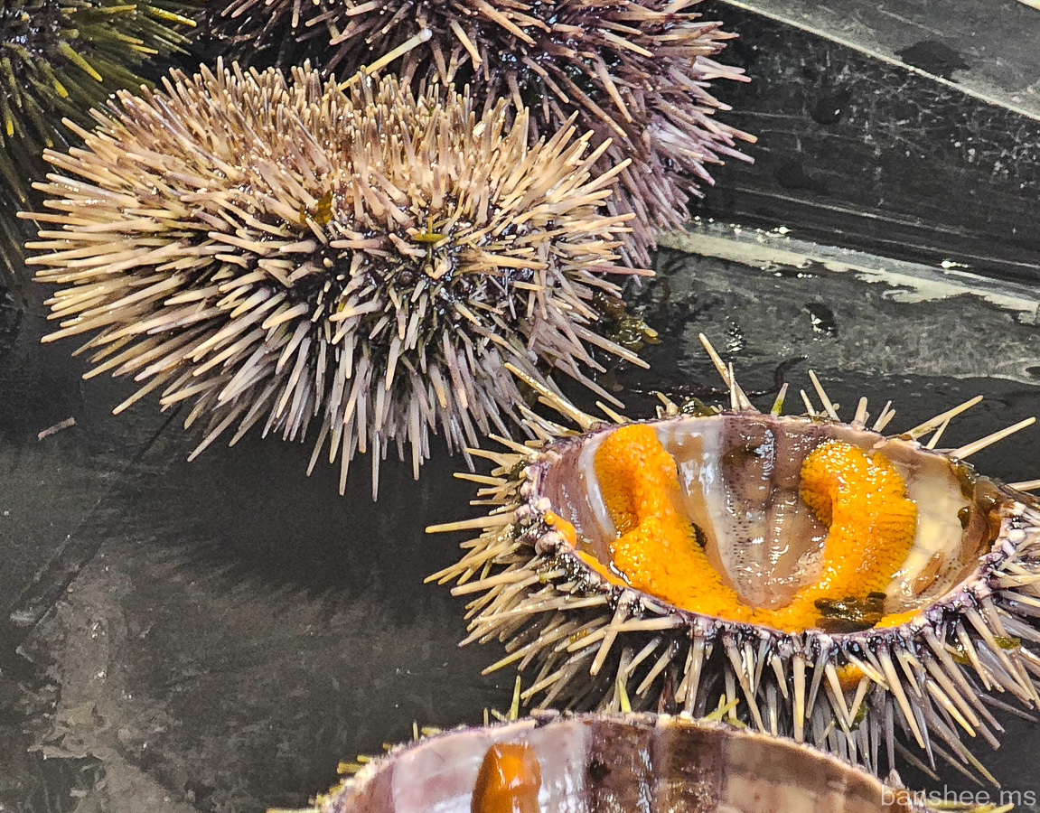 После возвращения с моря нас завезли в кафешку, где можно было поесть ёжиков. Я, впрочем, к морепродуктам отношусь с подозрением, а если их ещё и сырыми предлагают, то предпочитаю не рисковать. Ограничился пирожками. А ежи, по впечатлениям окружающих, на вкус напоминают морскую воду с икрой.