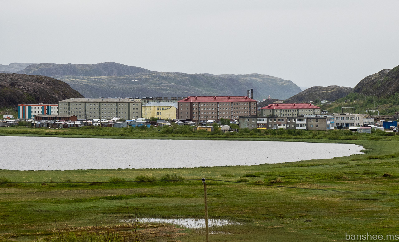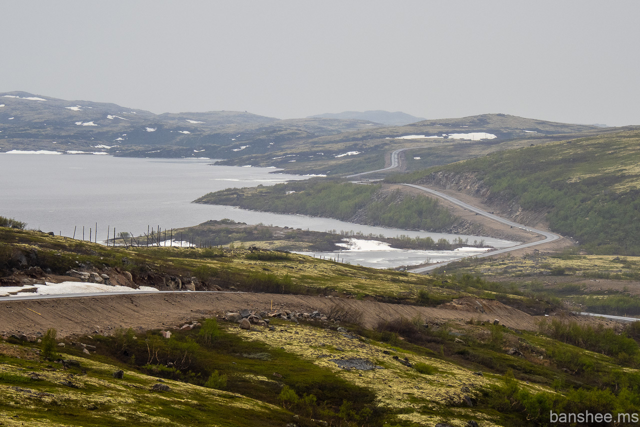 Виды были большей частью тундровые. А дорога была вполне пристойная. Некоторые части ещё достраивались, некоторые уже ремонтировались, но большую часть пути водитель держал скорость больше сотни. На фото — Верхнетериберское водохранилище.