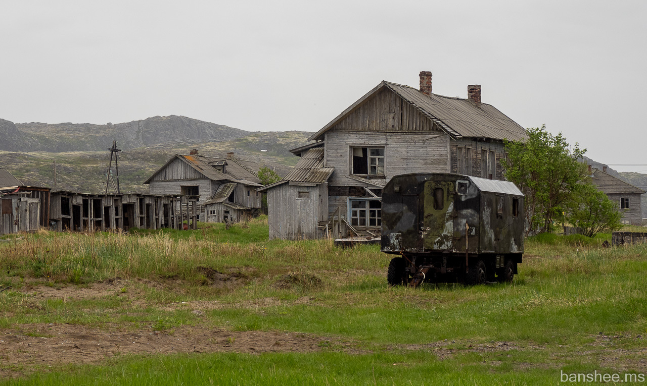 В стороне же от туристических объектов старая Териберка выглядит в основном таки. Есть несколько ещё жилых домов, но большая часть уже совсем нежилые. И даже вполне капитальная трёхэтажная школа уже несколько лет закрыта. Детей, что остались, возят на автобусе в «новую» Териберку.