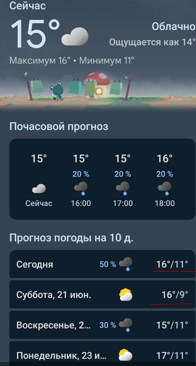 В Москве жопа. Ночью 11 днем 16 и дожди.