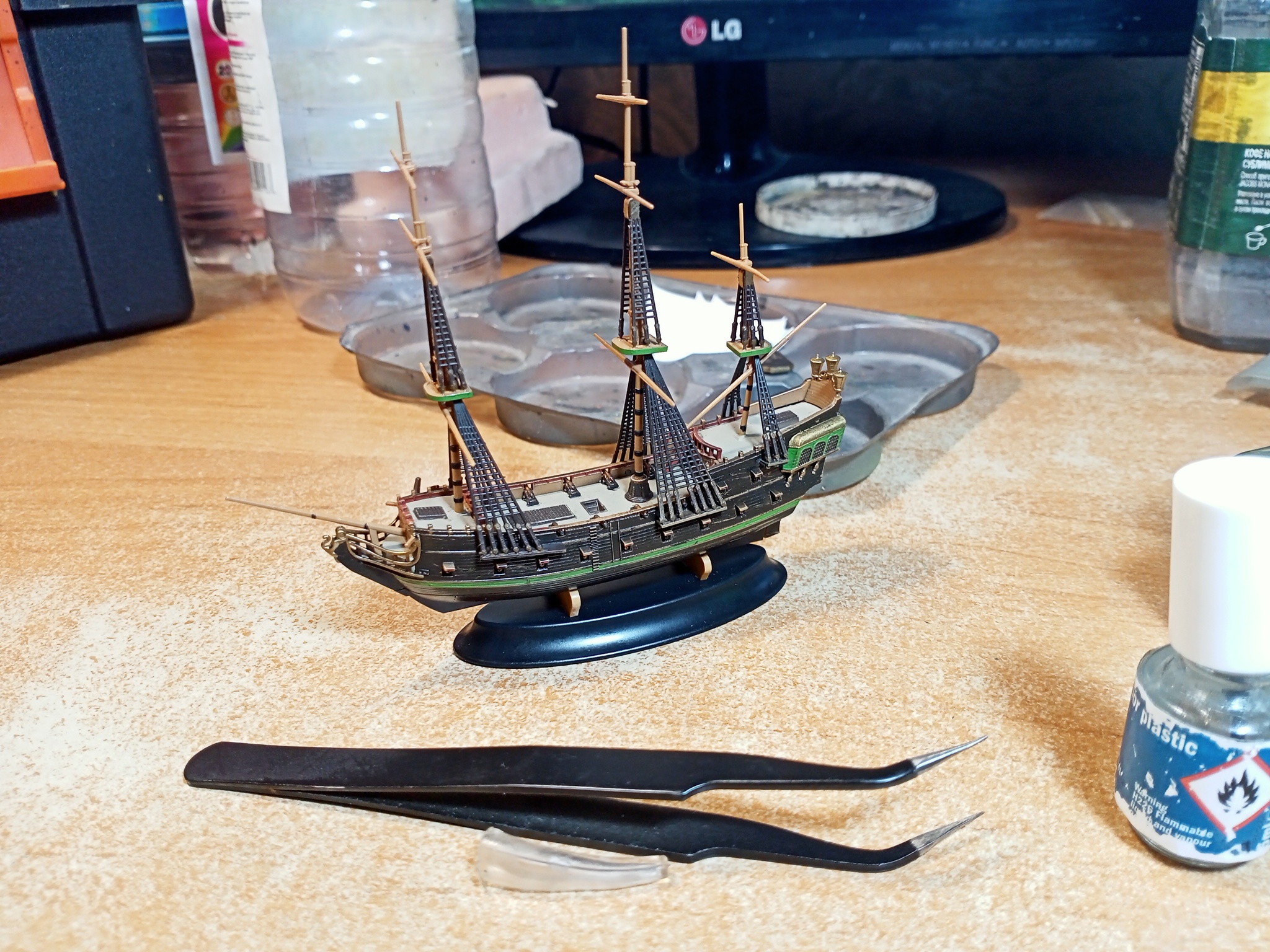 Вариант корабля с целым корпусом, установленный на типичную для судомоделизма подставку