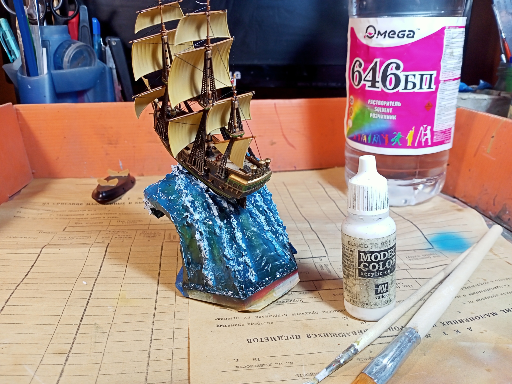 И вот такой морской сюжет получился в итоге. Я бы не назвал это полноценной моделью, но на качественный сувенир вполне похоже, не так ли?