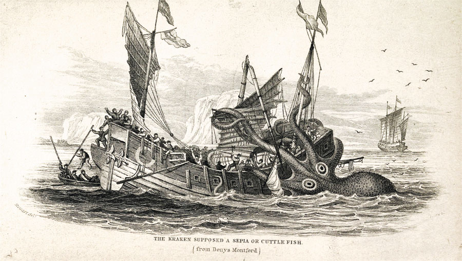 Впервые, с кальмаром-переростком столкнулись скандинавские моряки. Но по описаниям, это скорее всего, была огромная рыба.