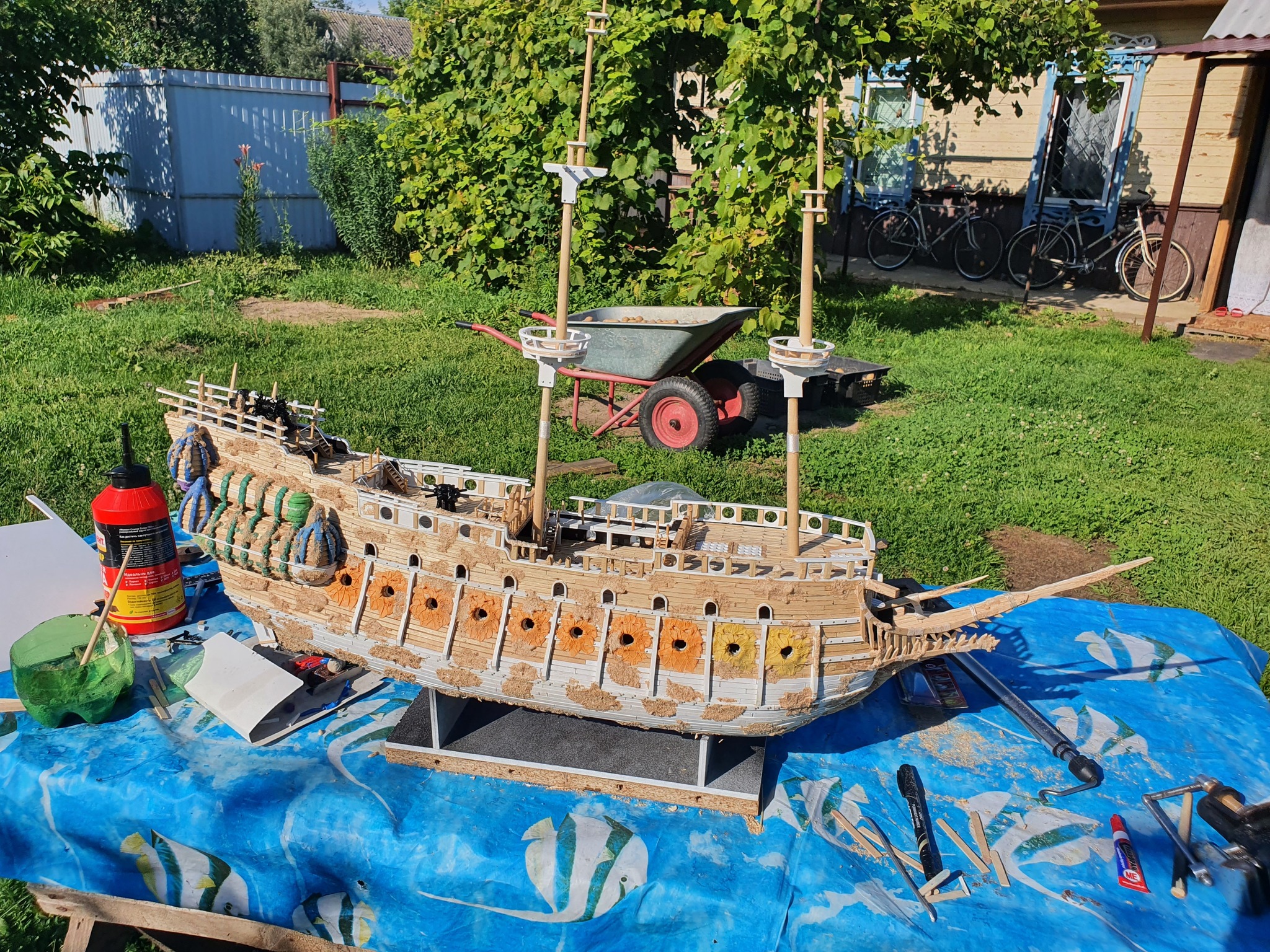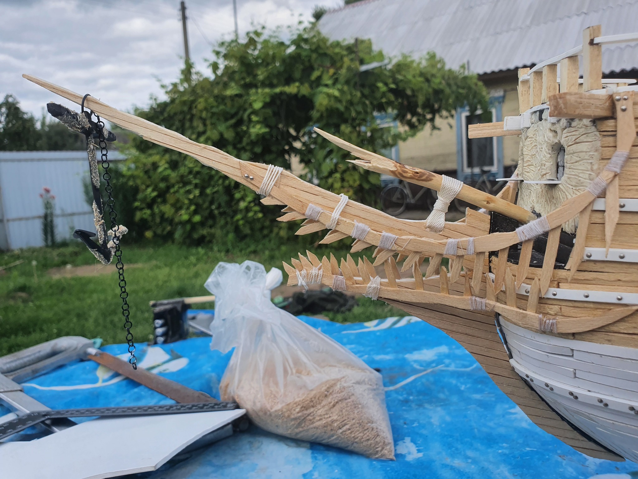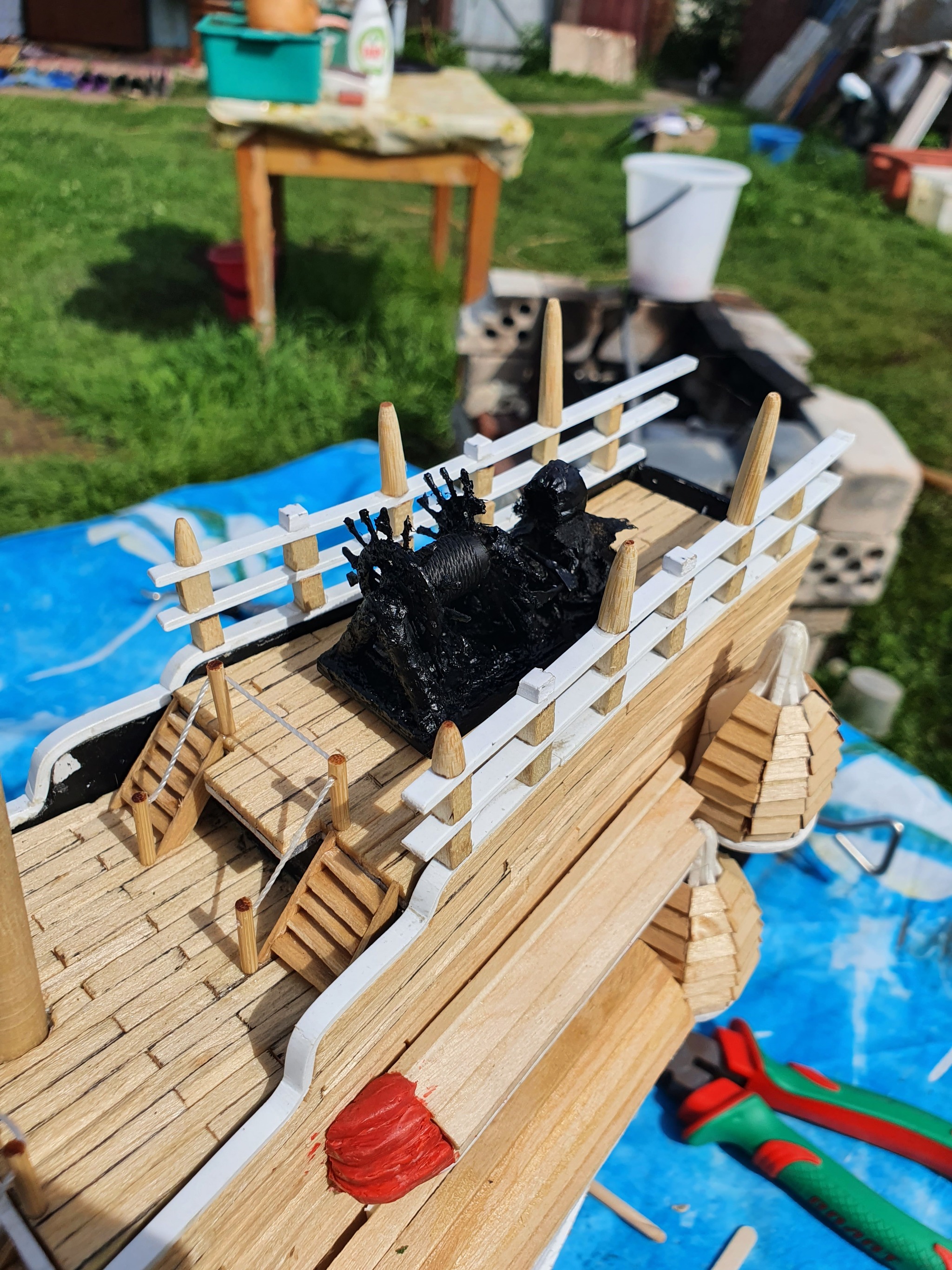 Пришло время пушечных портов, долго не мог решить лепить их из чего-то или делать из дерева. Остановился на втором варианте.