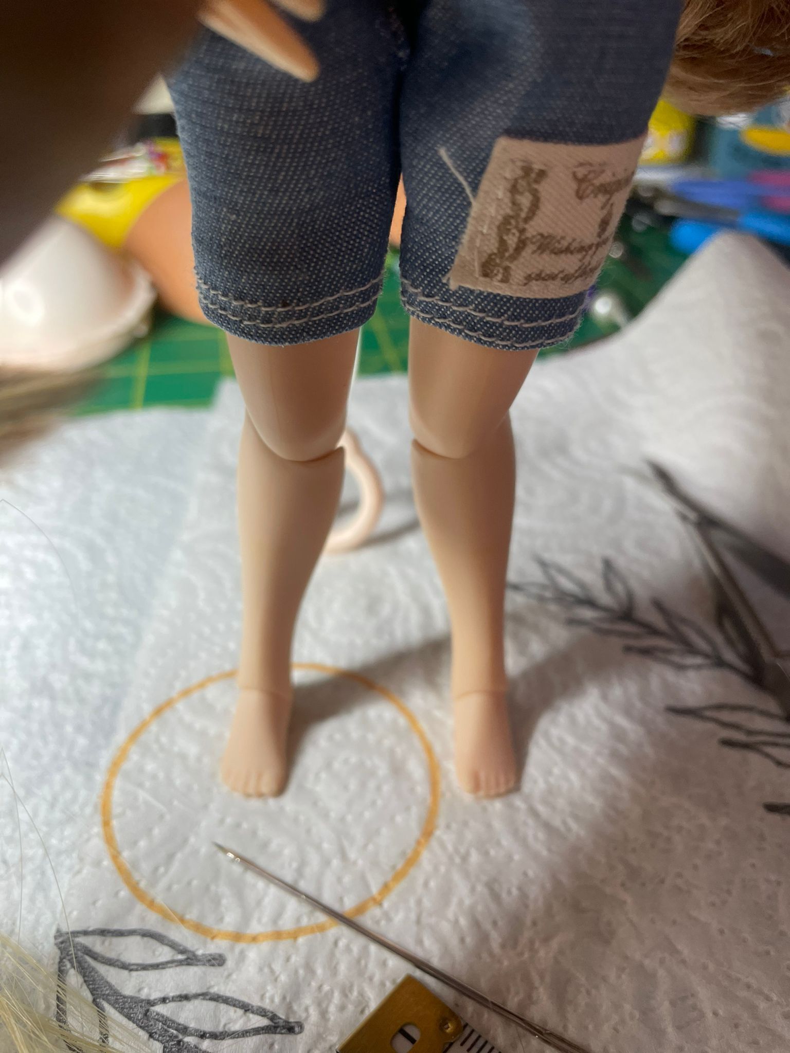 Приклеивал ноги к телу на двухкомпонентный клей, а для того, чтобы детали оставались неподвижны пока сохнет клей, по краю добавлял супер-клей. Можно было приклеить и просто на супер-клей, но есть инфа, что он через n-ый промежуток времени устанет и фигурка может разобраться обратно. Темные пятна на фигурке - это я красил маркером места шлифовки, чтобы контролировать снятие материала.