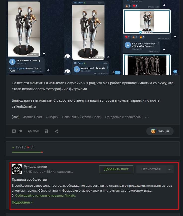 Телеграм каналы, где распространяют модельки, стали использовать мои фотографии к моделям балерин. Мне не жалко, просто забавно. Где они их взяли ума не приложу. Также Playground.ru выложили статью про продажу фигурок на авито, с моими фотографиями на заглавной картинке, однако, на авито я фигурки не продаю.