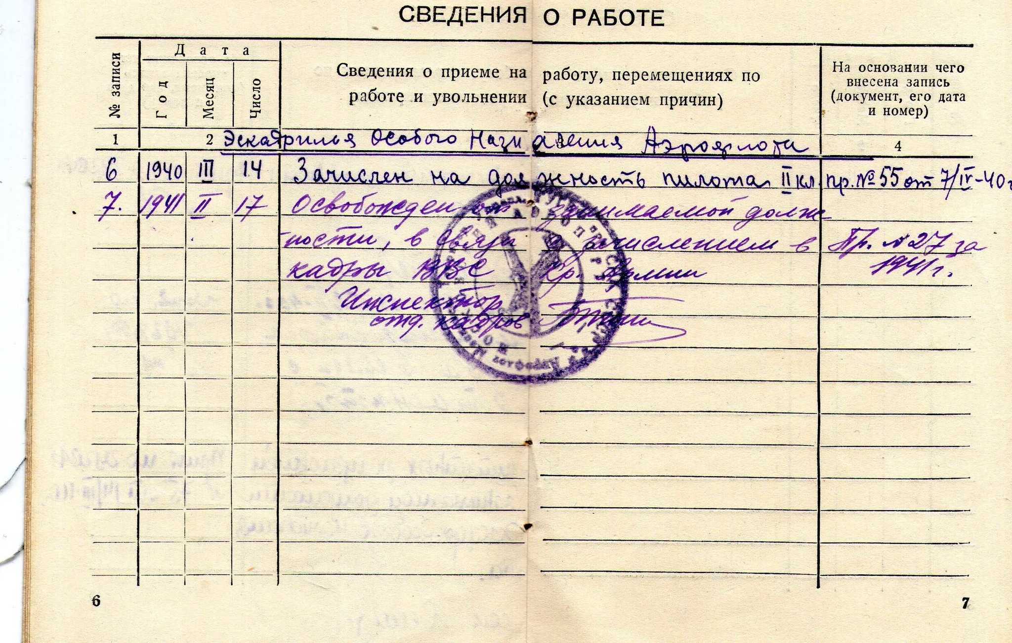 Затем был переведен в Москву, на должность пилота-инспектора Управления учебных заведений Аэрофлота, а в 1940 году – в Эскадрилью особого назначения Аэрофлота. Там он служил вместе со своим будущим командиром полка – великим лётчиком Головановым, впоследствии Главным Маршалом авиации СССР.