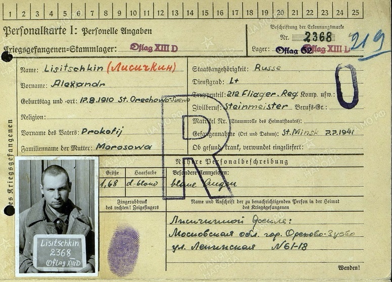 Согласно документам, сбитый над Белоруссией 24-го июня Александр Лисичкин был пленён немцами только через две недели – 7-го июля в городе Минске. Это значит, что две недели он либо скрывался в лесах, либо оказался в расположении советских войск, окруженных внутри Минского «котла».