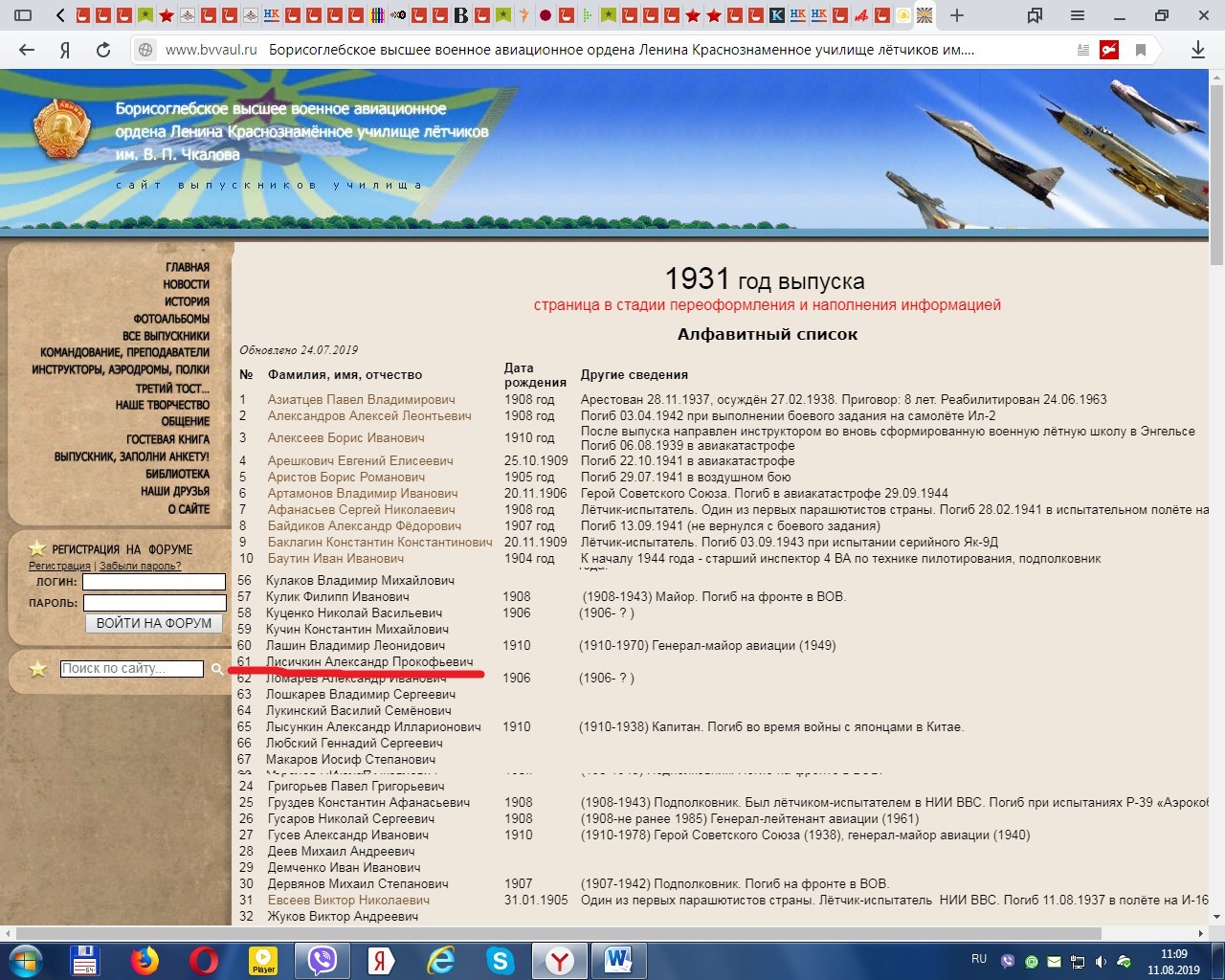 … Со мной в купе ехали пилоты Грузинского управления Аэрофлота … Василий Вагин, Николай Бородин, и пилот Московского управления Александр Лисичкин — красавец, хороший музыкант, никогда не расстающийся со своим баяном.