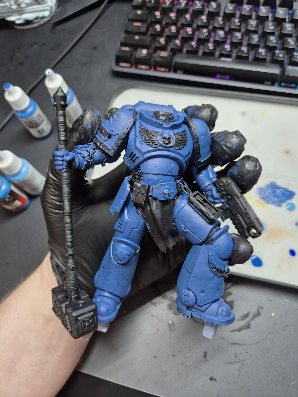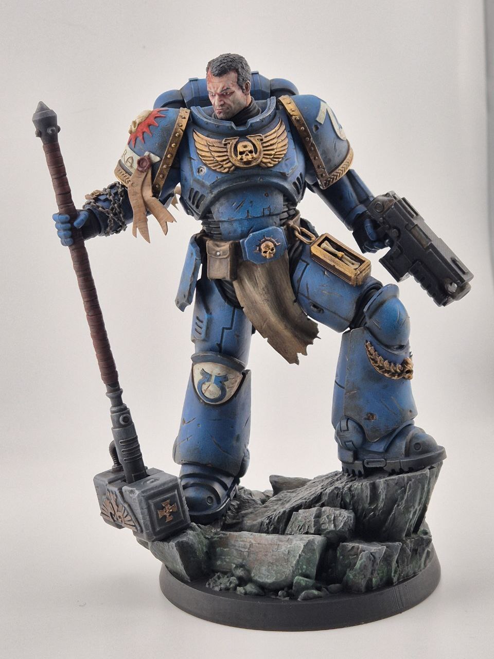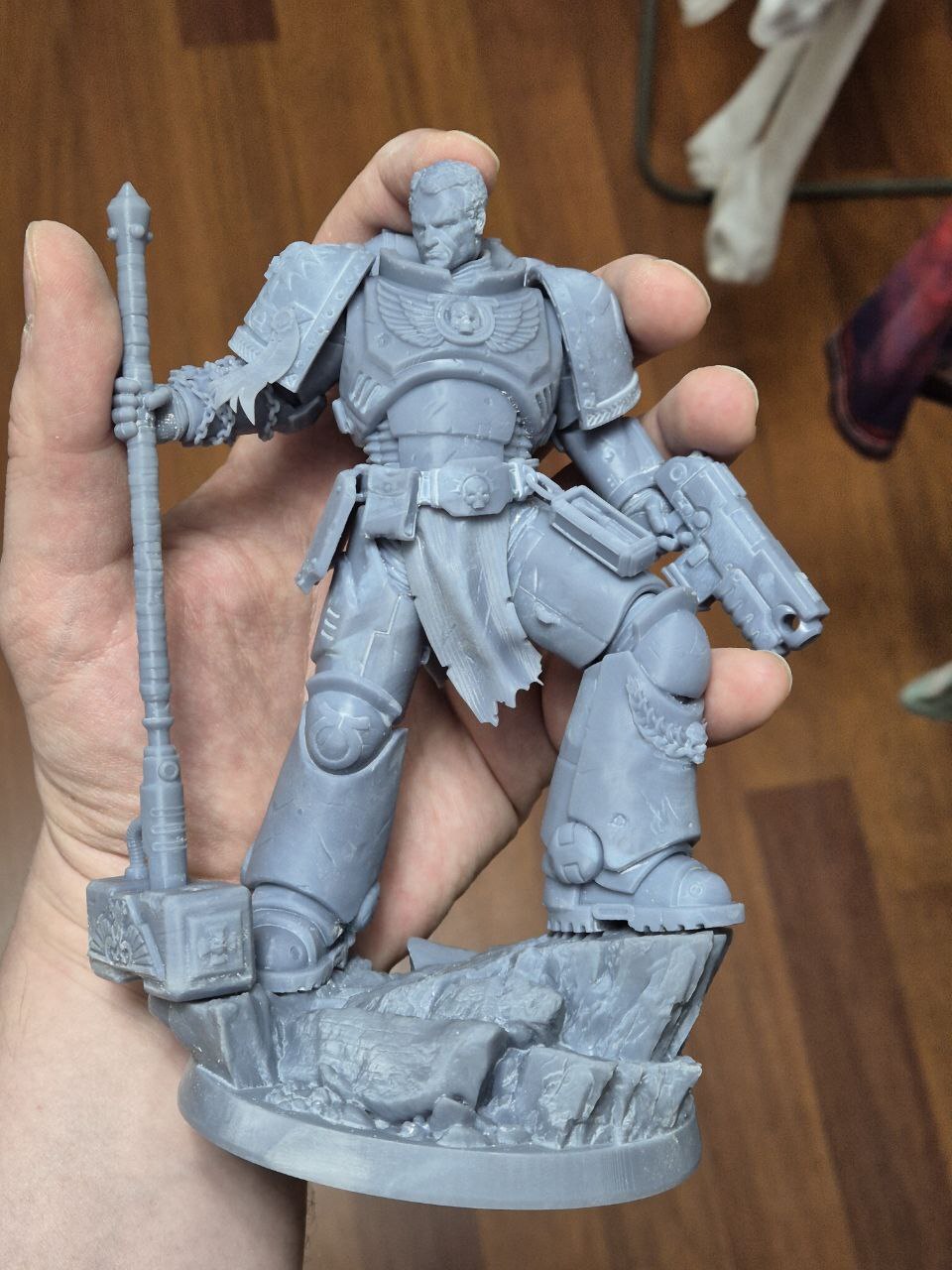 Вот и настал самый сложный момент. У этой модели есть 2 версии головы: голова и шлем. Согласно кодексу Астартес, нужно было делать модель в шлеме. Но модель была бы скучной. Поэтому я выбрал путь храбрых и решил делать лицо.