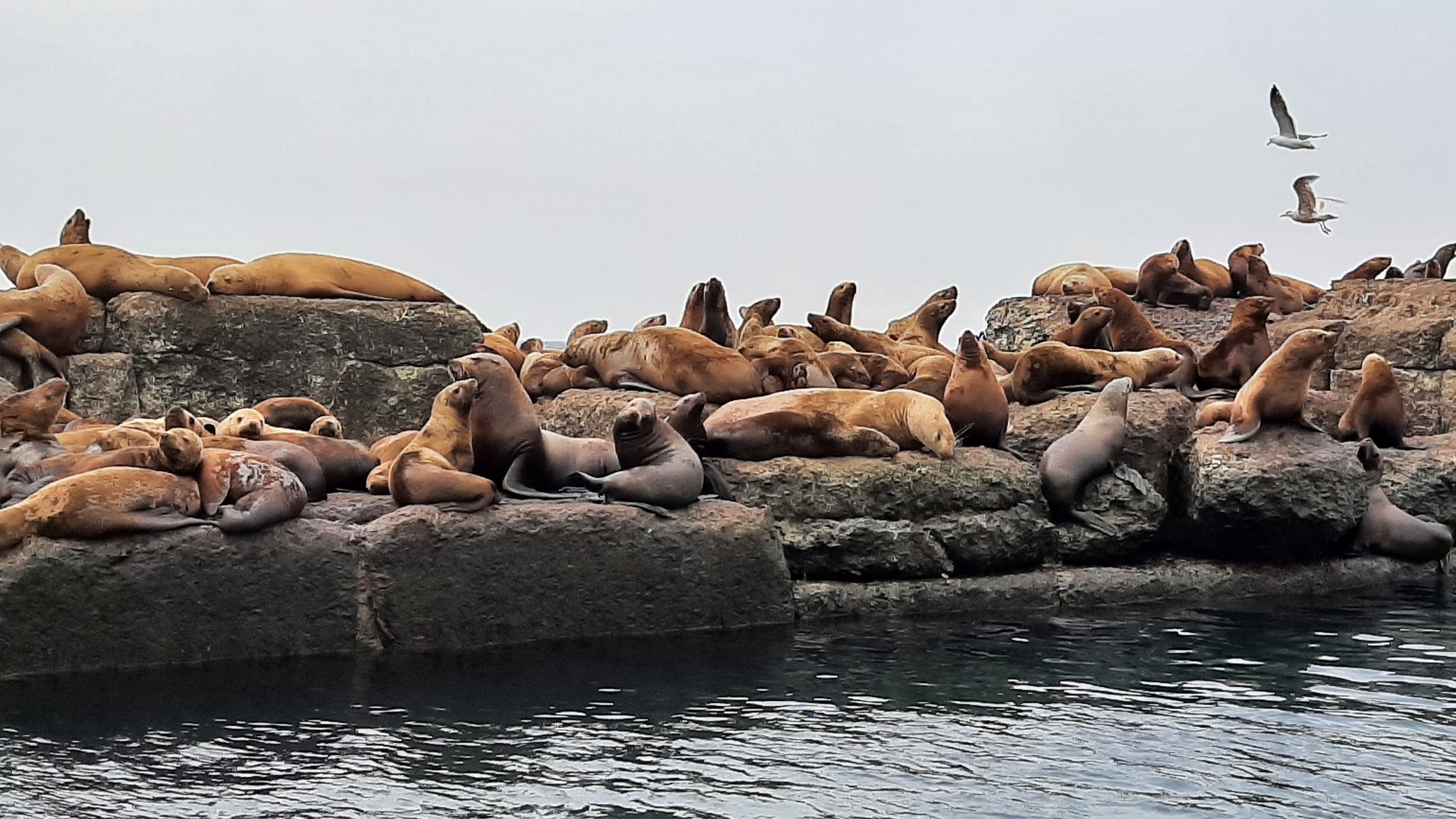У сивучей (он же северный морской лев) во всю идёт сезонный период лежбища. Снимали в г.Невельск, Сахалинская область.