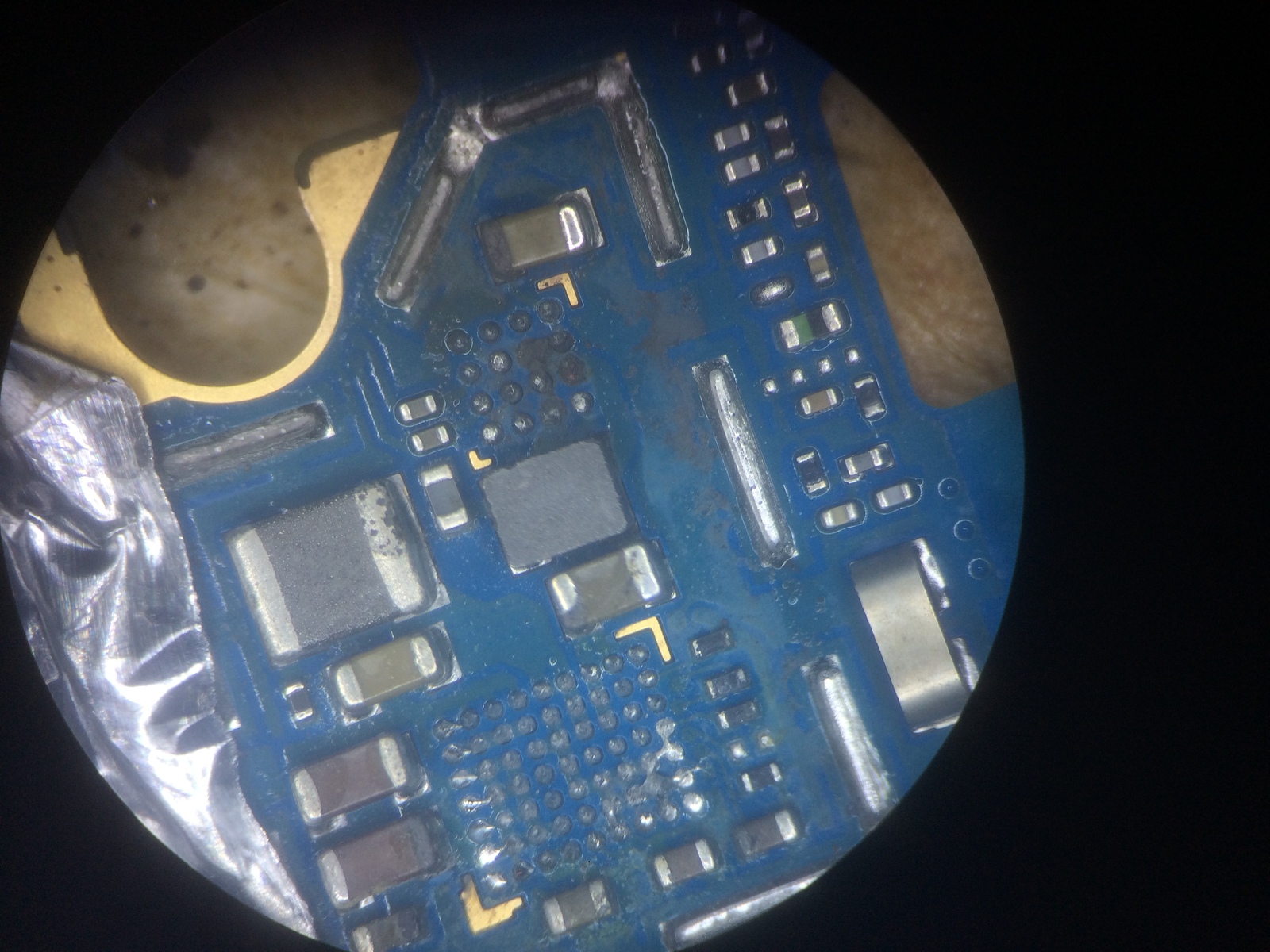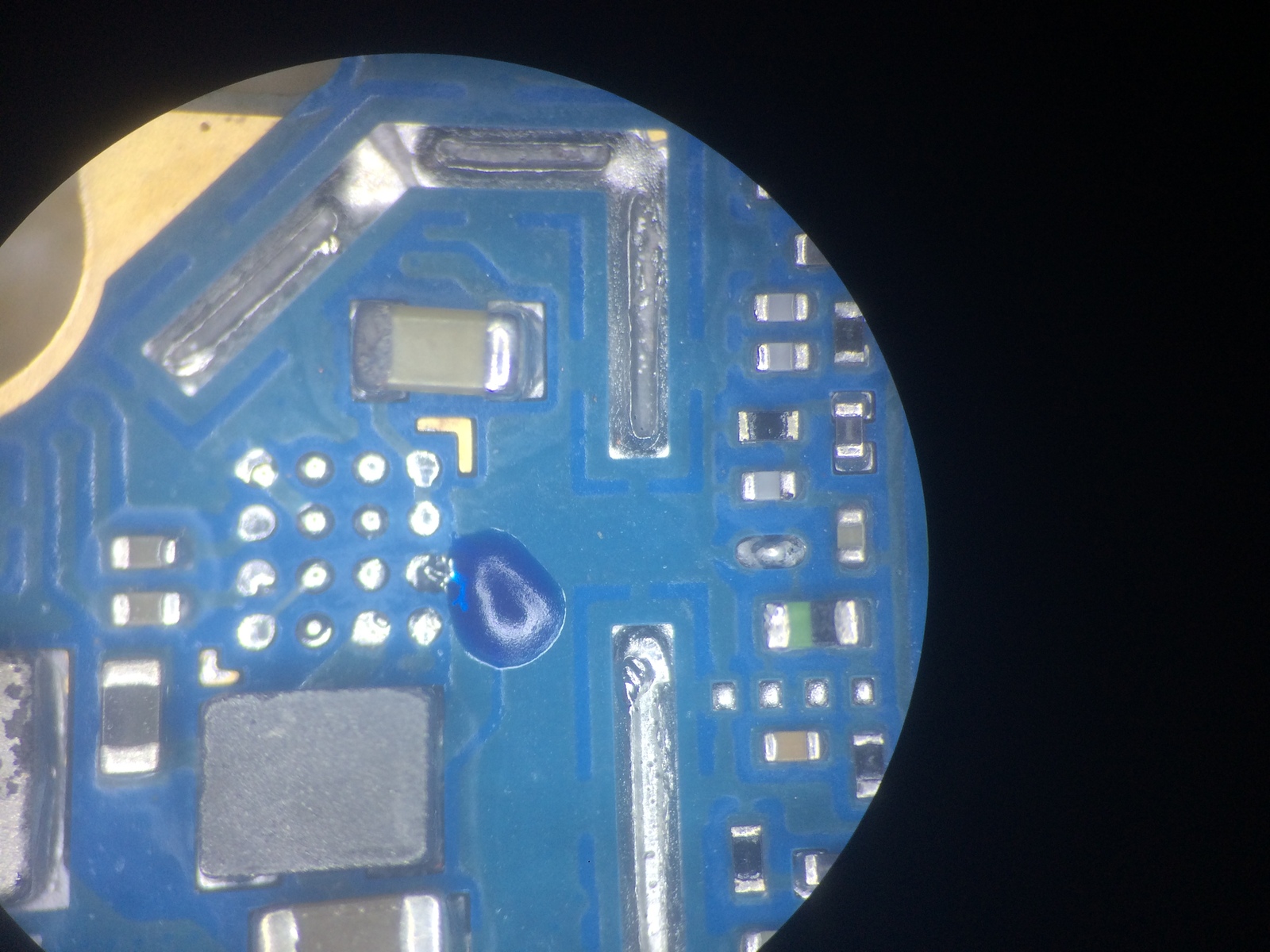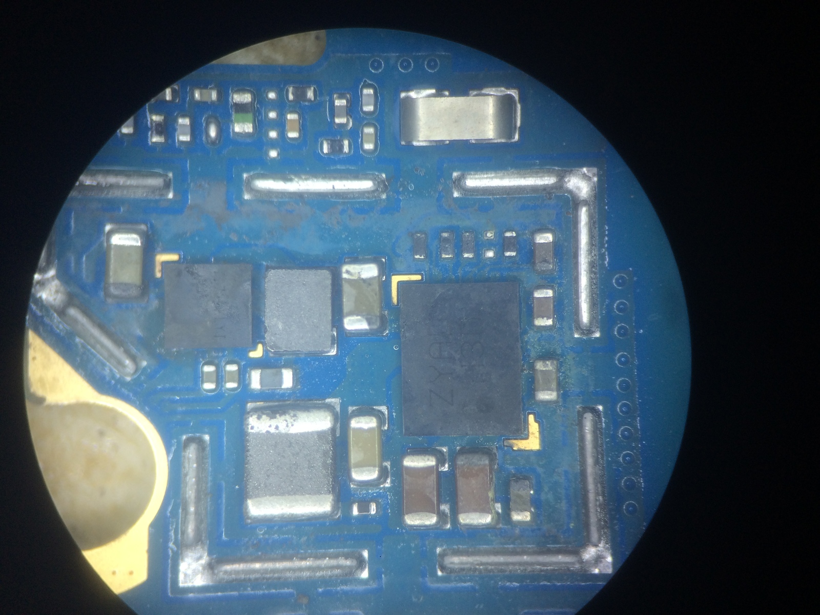 2 маленькие микросхемки оказались как раз таки в самом эпицентре. Но не смотря на их размер, на них завязано самое высокое напряжение в телефоне - подсветка и зарядка.