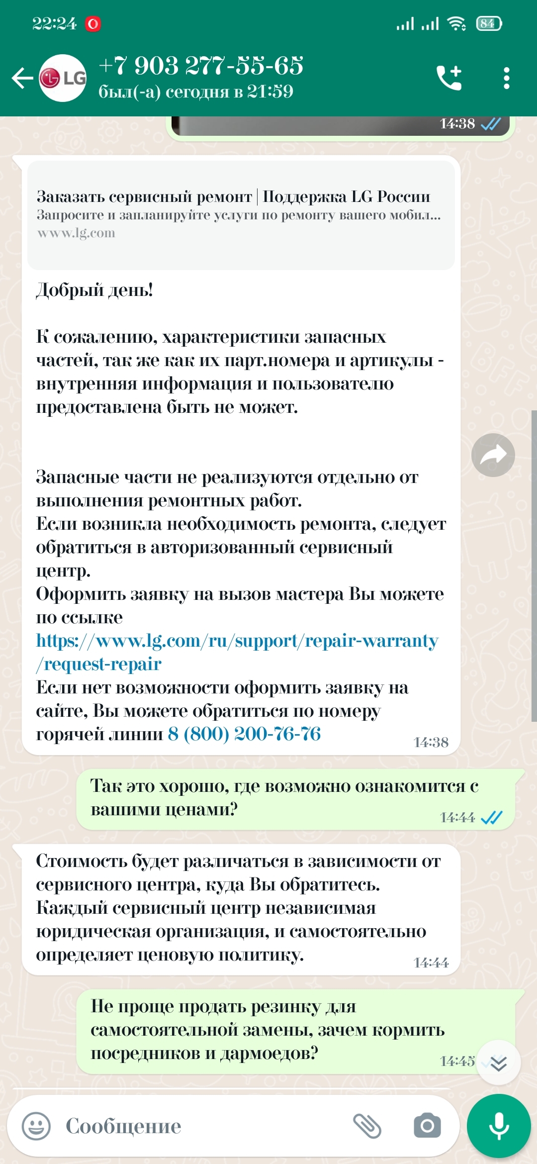 Всем доброго времени суток! Произошла у меня беда с холодильником. На двери порвалась уплотнительную резинка. Надо же купить и заменить - подумал я. А куда обращаться? Правильно к производителю. Нашёл сайт, а на сайте ватсап, но не все так просто. Оказывается, детали фирма не продаёт без работ по ремонту.