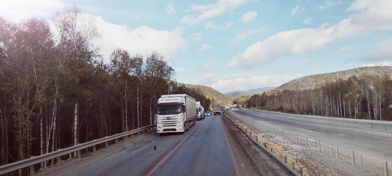 По дороге в сторону Уральского хребта меня не покидала мысль, а почему это в вещевом ящике лежит двойной комплект тормозных колодок. Отличной новостью стало то, что горняк то работает, то нет. Встали на обочинку, предупредили руководство, связались с постоянным водителем этой машины. Как оказалось горняк не работает давно, ему похрену, да и в целом дядя был в гневе, что мы поехали на "его" машине. Окей, предупредили директора, что есть шанс подпалить новые диски. Вздохнули, опустили четвертую ось на прицепе, всё же два лишних тормозных колеса нифига не лишние и погнали, благо веса немного.