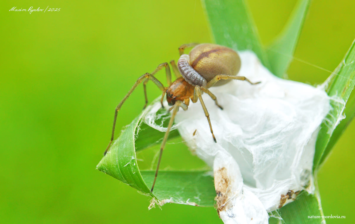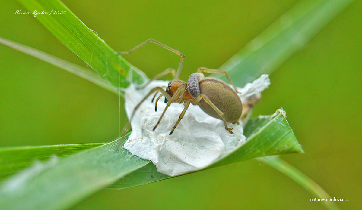В конце июня, шастаю по своим местам в поисках паучьих домиков. Долго объяснять, зачем, почему, нафига и т.д. Просто надо мне)) Было встречено 12 "домиков", в которых находились самки хейракантиума бродячего (Cheiracanthium erraticum). Хотя, хотелось бы что-нибудь другого и более прикольного. Но, не судьба... Но, в одном случае на пауке была замечена небольшая личинка неизвестного (на тот момент) насекомого. После фотосъемки паук с "другом" был оставлен в покое, на месте находки. В дальнейшем выяснились довольно интересные подробности.