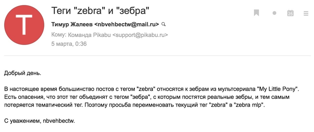 Тег "zebra mlp" появился позже, и большинство постов с зебрами из мультика все равно постились с тегом "zebra". Я понимаю, что тег "zebra mlp" гораздо лучше подходит для такого контента. В этом и заключается суть моей просьбы: перенести этот контент в тег "zebra mlp".