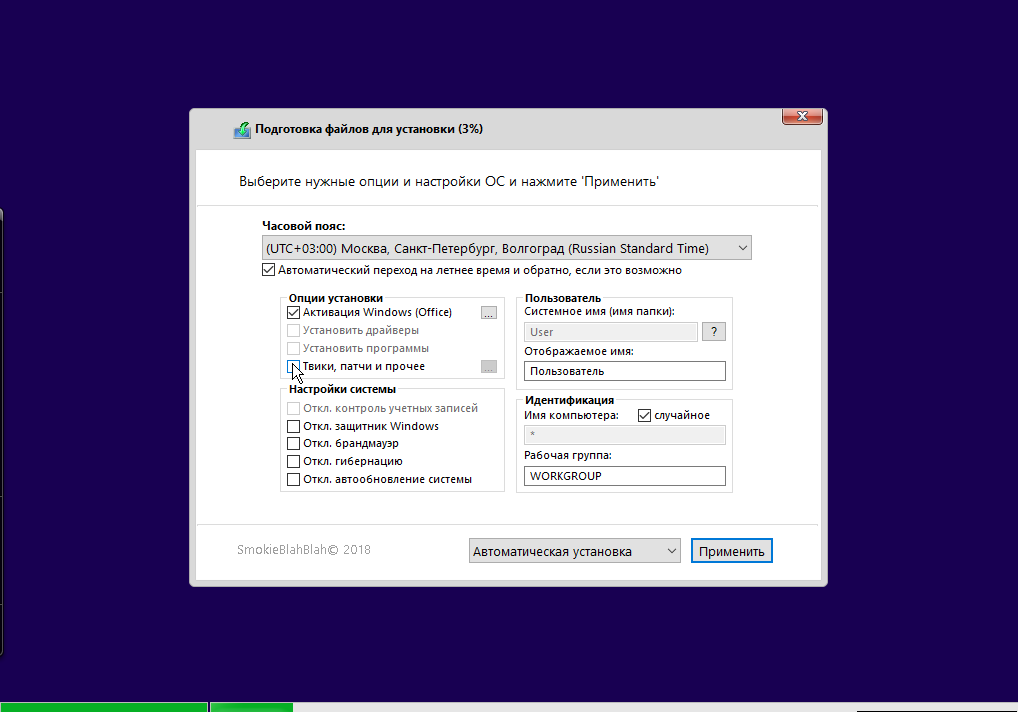Нас приветствует вот такое меню установки (это сборка SmokieBlahBlah, ваша может выглядеть по другому - это некритично).