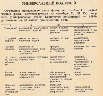 Пытаемся сгенерить поздравительный стих для директора. Взяли за основу идею с таблицей код речей (шаблон в комментариях).