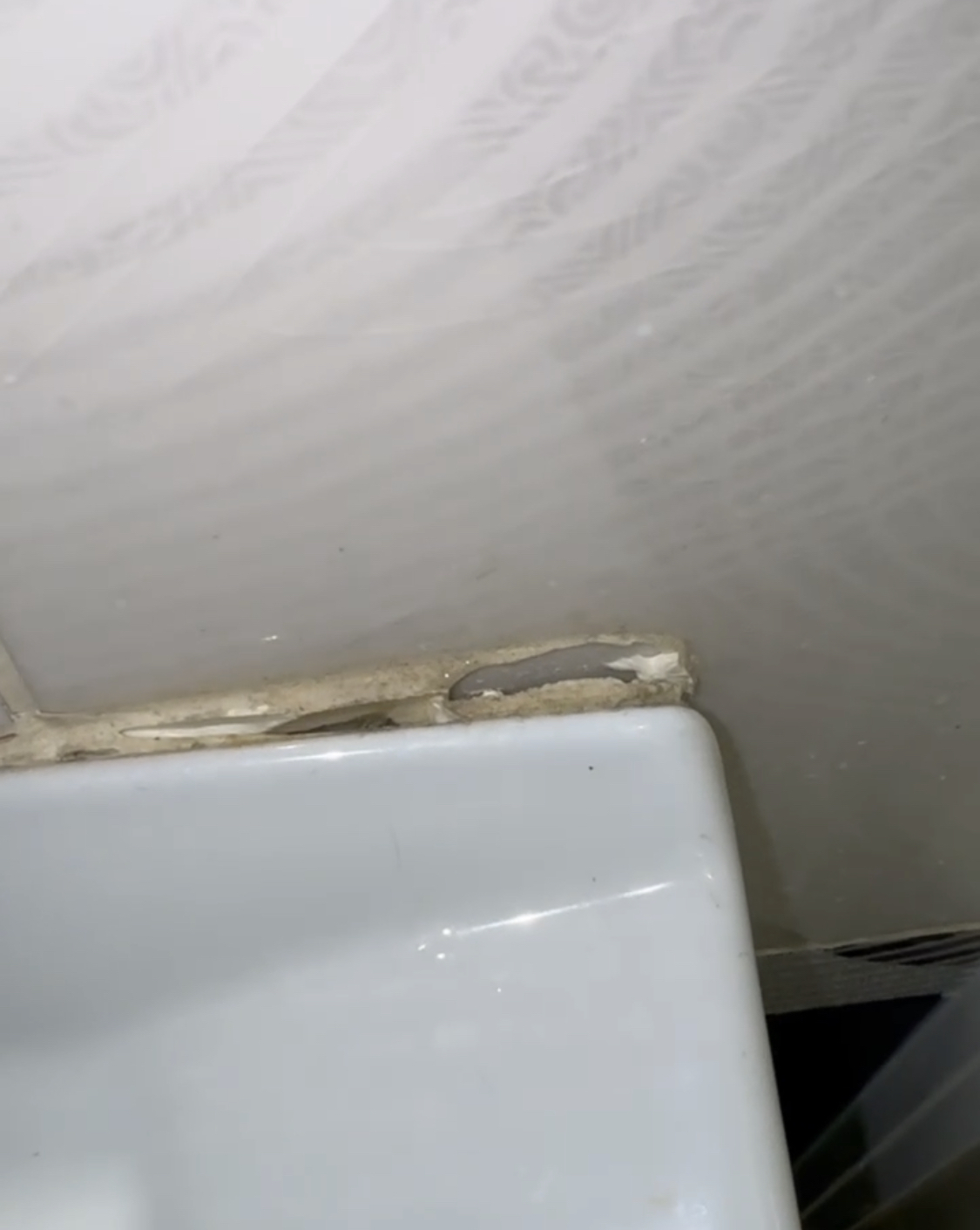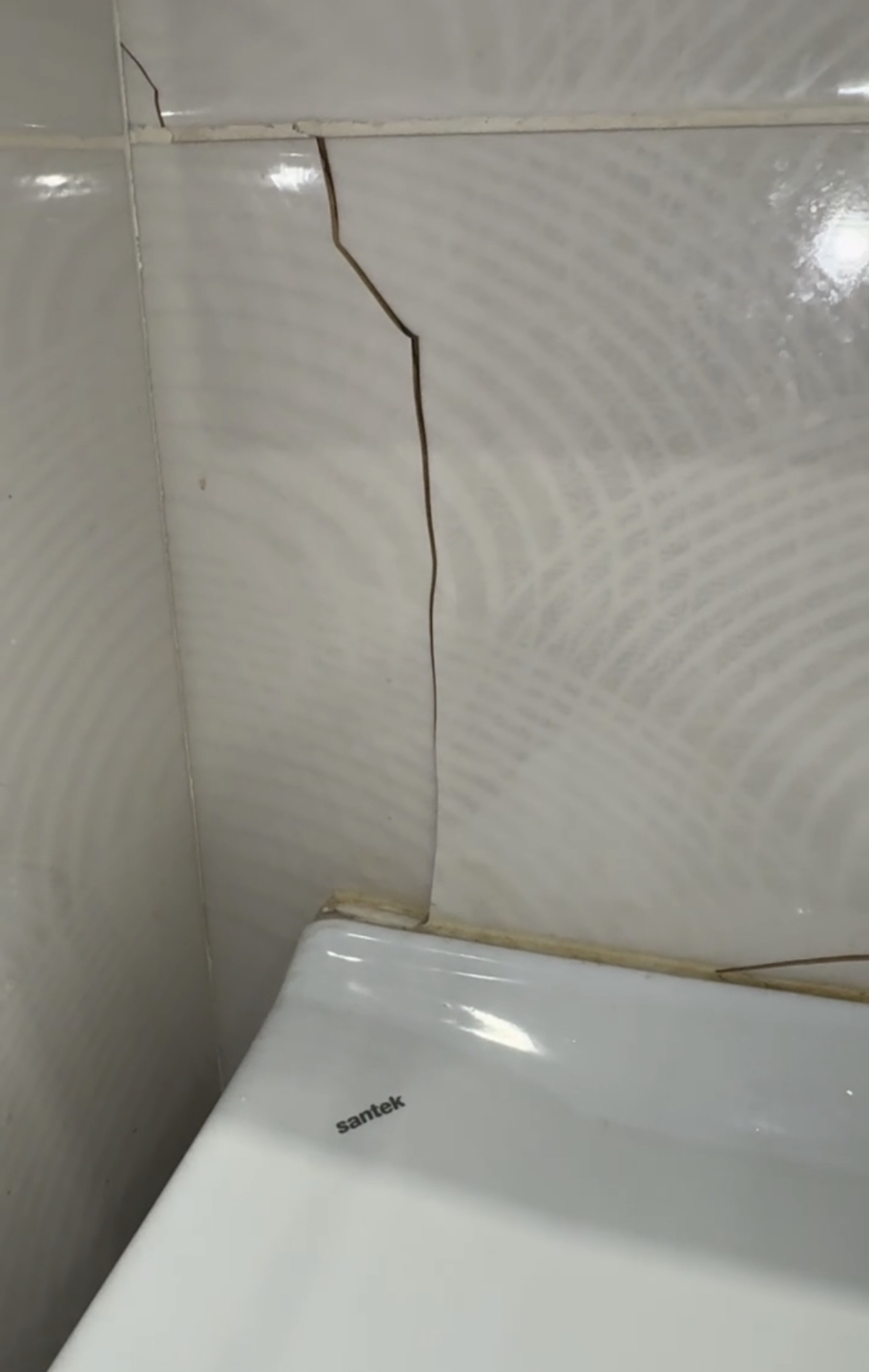 Раковина, в месте где затирка, между самой раковиной и плиткой, якобы отошла и дала трещины по плитке.