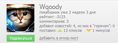 Ну да, я его и имел ввиду. Тут уже не важно, у него всё равно рейтинга было немного, до -200 и блокировки аккаунта он дошёл буквально минут за 10.