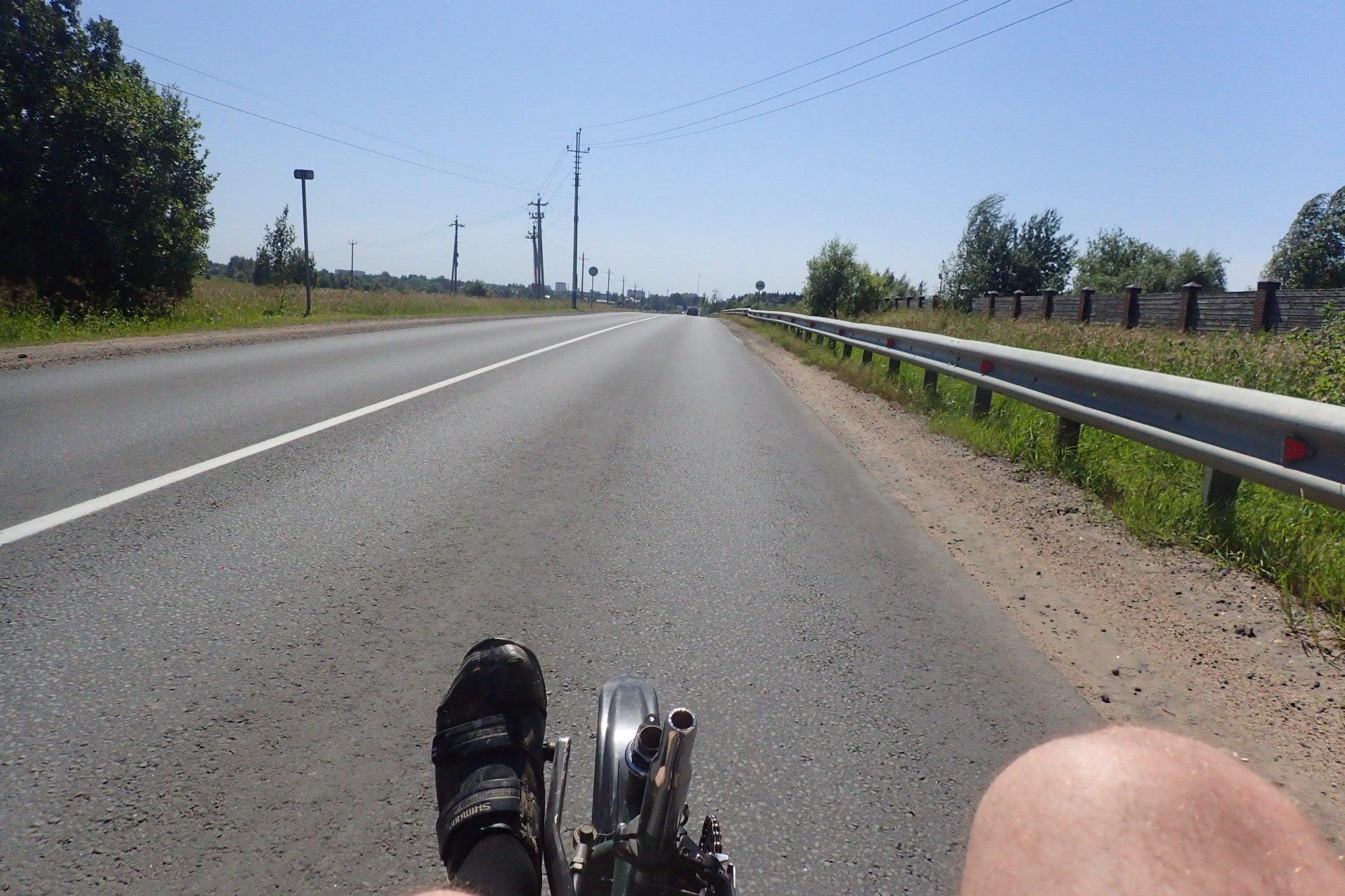 Вторая половина кольца - дорога с небольшим сбросом, но в этот раз был аццкий влобешник. И тут лигерад показал своё преимущество. Хоть и езда на нём против сильного ветра не доставляет особого удовольствия, но всё равно это не так печально, как на вертикальном велосипеде. Ещё один приятный бонус - водятлы, видя не дороге непонятную кракозябру, уже не втискиваются в полосу вместе с тобой в 5 сантиметрах от руля, а обгоняют с запасом, как положено. Вот реально ни одного долбоёба, все смещаются при обгоне.