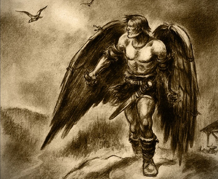 О Вёлунде известно, что он великий кузнец и он покалечен (хром, как и Гефест). Также в одном из текстов лабиринт назван «домом Вёлунда», что является еще одной отсылкой к греческим мифам, но уже не к Гефесту, а к Дедалу – создателю лабиринта, великому изобретателю. Кстати, Вёлунд тоже умеет летать, и тоже благодаря механическим крыльям.