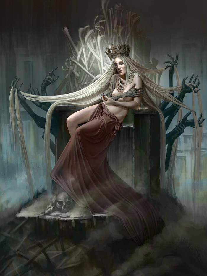 Древние германцы знали Хель под именем Хелла. В «Старшей Эдде» говорится, что облик богини «мрачный и жестокий», одна половина ее тела черно-синяя, а другая – мертвенно бледная. Хель играет ключевую роль во многих мифах, включая миф о гибели Бальдра, где она соглашается вернуть сына Одина в мир живых, если каждое существо в девяти мирах будет плакать по нему. Плакать отказалась только великанша Трекк, есть версия, что это был сменивший обличье Локи. В итоге, Хель не вернула Бальдра.