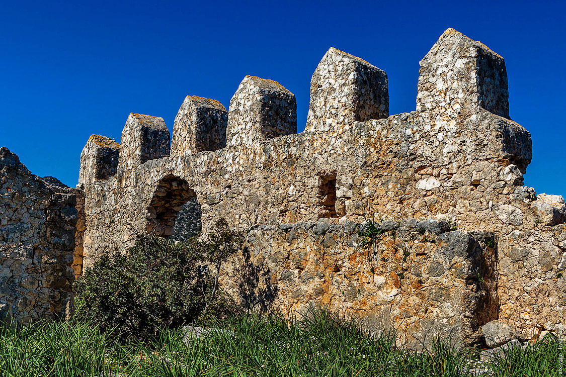 Также тут есть кладбище, возле которого можно набрать из крана воды. И прямо от кладбища видно старинную византийскую крепость на холме. К ней я и отправился (но перед этим спрятал в кустах рюкзак, чтобы лишний груз не тащить).