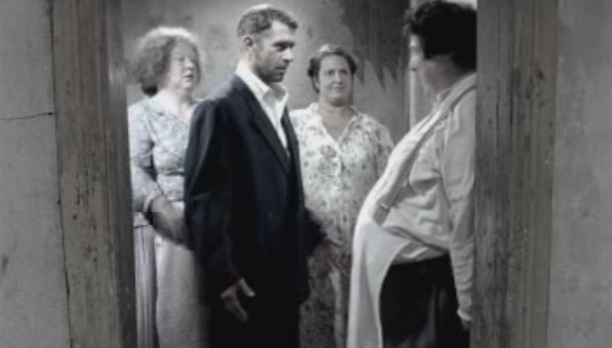Эммик, тащит Гоцмана за галстук и выходит с ним на балкон приговаривая.:-Сейчас вы увидите. Что именно Гоцман должен был увидеть, он так и не узнал, потому что Эмик зацепил забытую на перилах сковородку. И чуть не сгоревшая рыба вместе с горелым маслом полетела прямо на Давида Марковича. После чего начался обыденный в таких случаях концерт, Эмик со слезами выкатывается во двор, за ним причитая выходят тетя Песя и Циля и начинают рыдающего Эмика успокаивать. Ну а дядя Ешта видя горе постигшее Гоцмана, предлагает ему костюм.