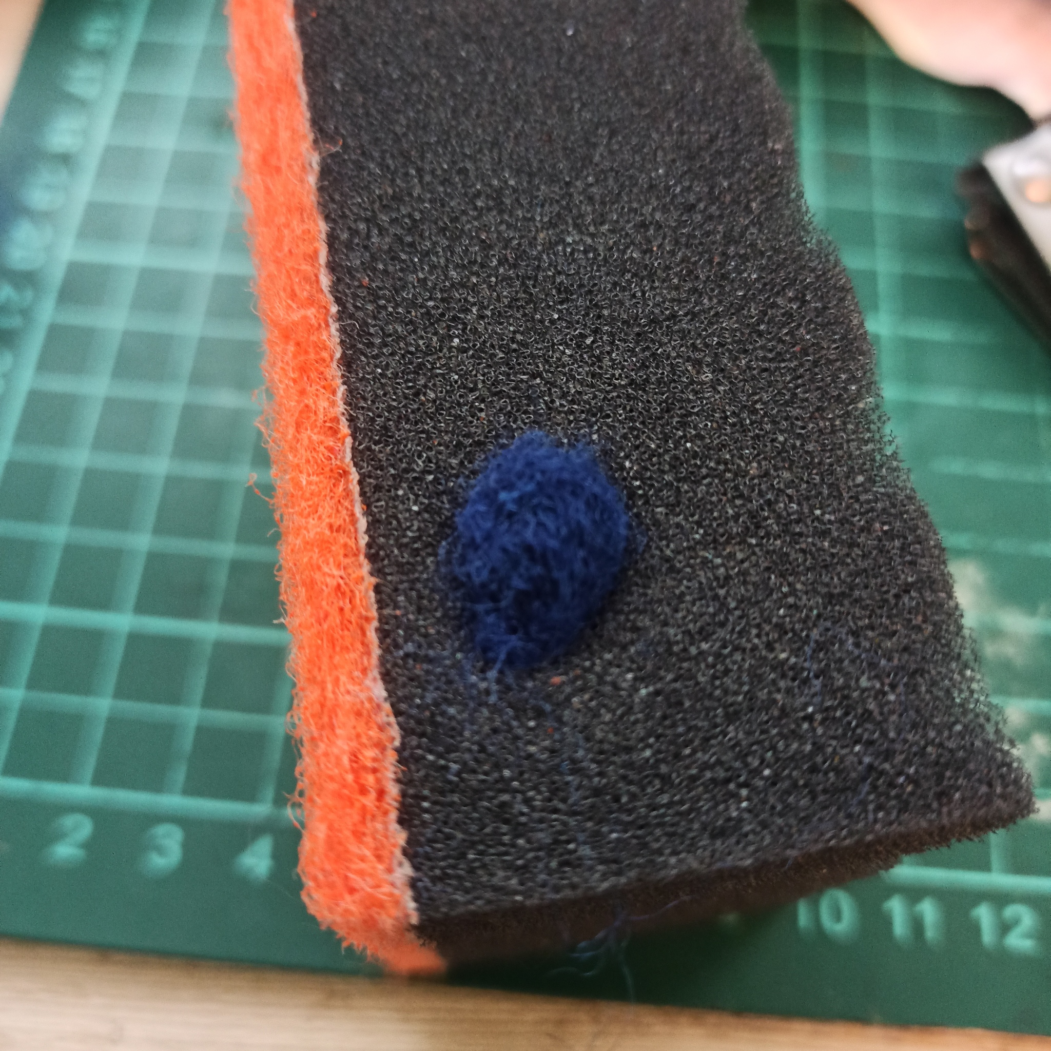 Чуть не забыла про нос. Вырезаем кусочек фетра и наваливаем на него нос (на губке удобно - подсмотрела здесь на Пикабу, до этого валяла на пенопласте) Это второй мой валчный объемный нос из кардочеса, если что.