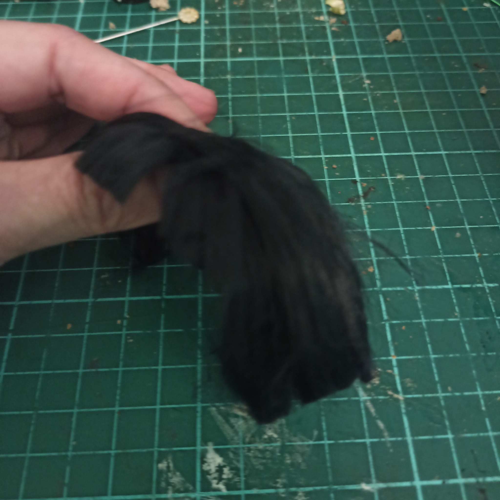 Приваливаться иголкоц они не захотели, поэтому завернула будущий тресс в газетку и прошила швейной машинкой с шагом 0.5. Сделал две и клеем присобачила их к голове.