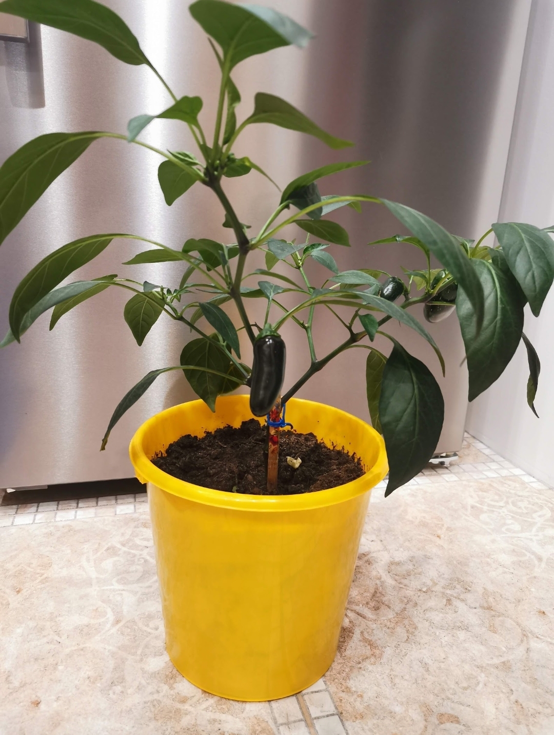 На каждом из 3х растений было от 7 до 10 плодов, разного размера, так как бутонизация-цветение-завязь происходят не одномоментно, на разных ветках. Лето выдалось жарким, поливать приходилось ежедневно, 2р/неделю, под корень, давала раствор сульфата калия, в половинной дозе, чередуя с Растворином . По листу-Плантафол, марки 5-15-45.