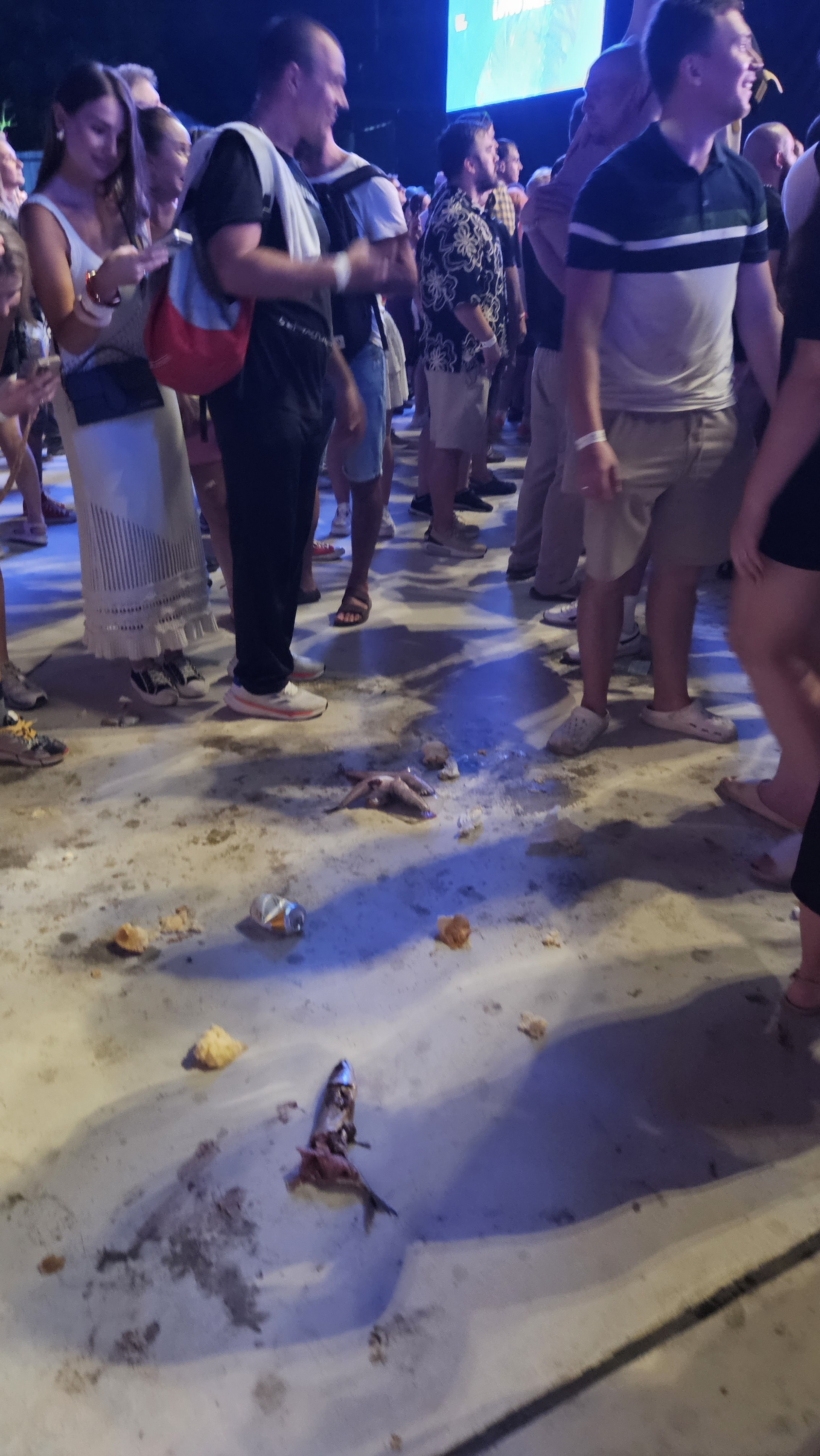 Пятка заныла, ибо в сапогах давно не ходил, а стоять пришлось долго: Концерт всё никак не начинался. Был под угрозой срыва. Т.к. у нас полиция нравов гораздо строже чем в Алмате например. Пару дней и там был концерт. Рыбой кидались, тортами... А у нас: