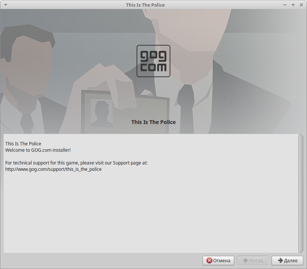 Собственно сам процесс "установки" этих игр достаточно прост, тот же This is Police имеет свой установщик в виде .sh скрипта, который достаточно запустить и вы получите вот такой вот полноценный win-like установщик: